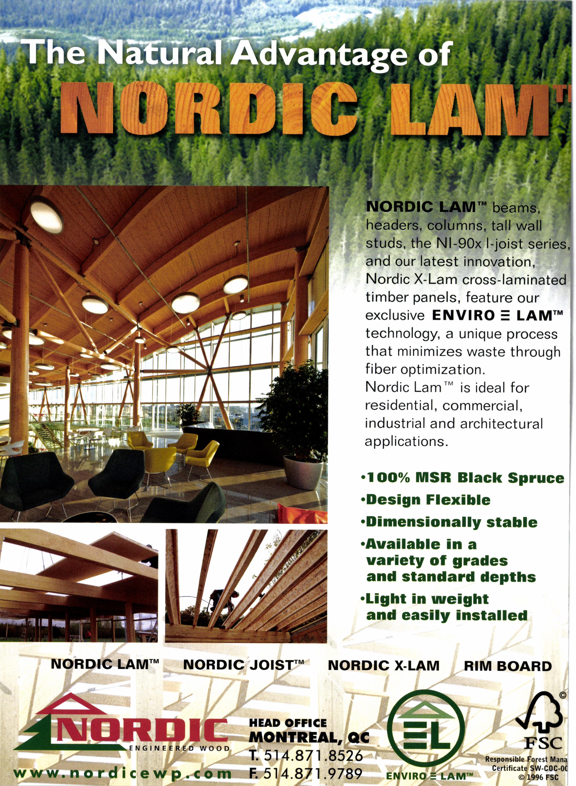 Nordic Lam'" is ideal for residential, commercia l, industrial and architectural applications.