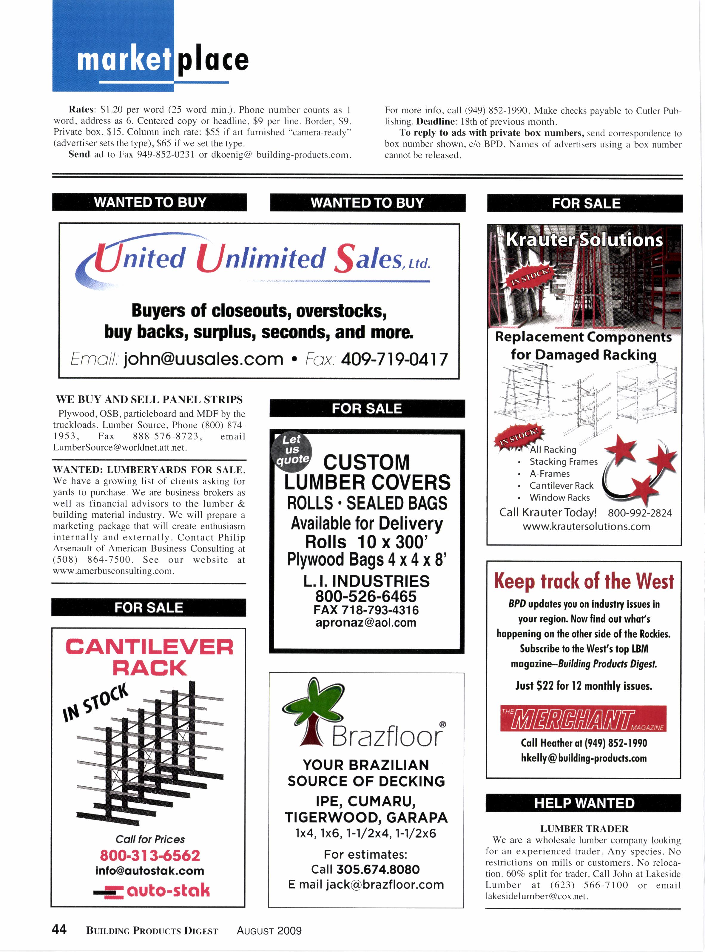 lllTERllET ADS: Alan 0akes, www.buildingproducts.com. Phone (919) 852-1990 Fax 949-852-0231 Email aioakes@aol.com.