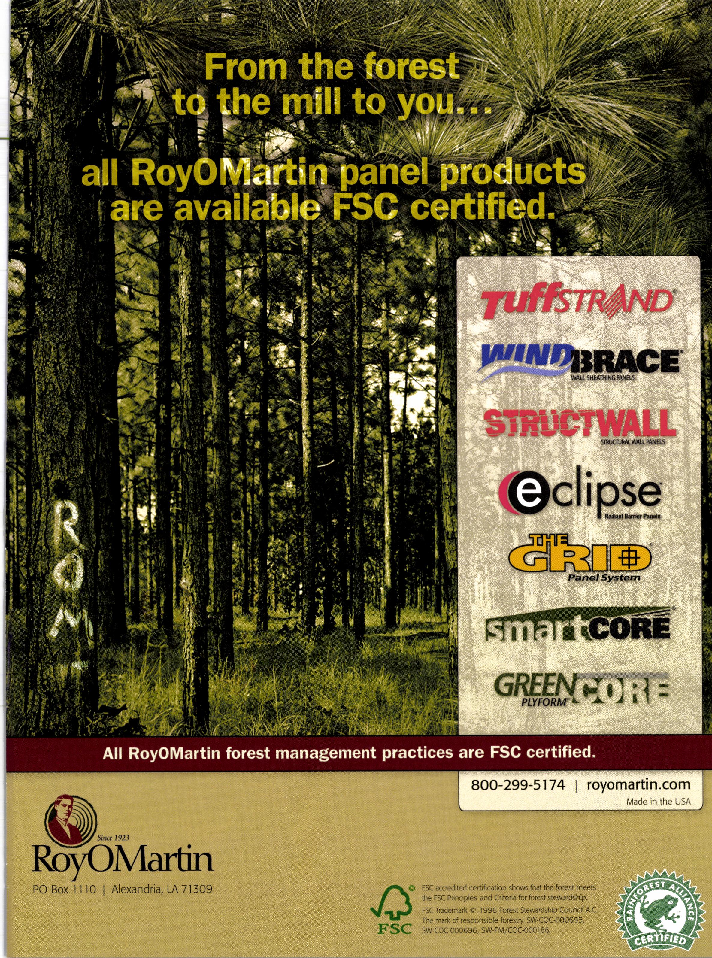 The front cover is a paid advertisement, this month sponsored by Arch's Dricon fire retardant treated wood.
