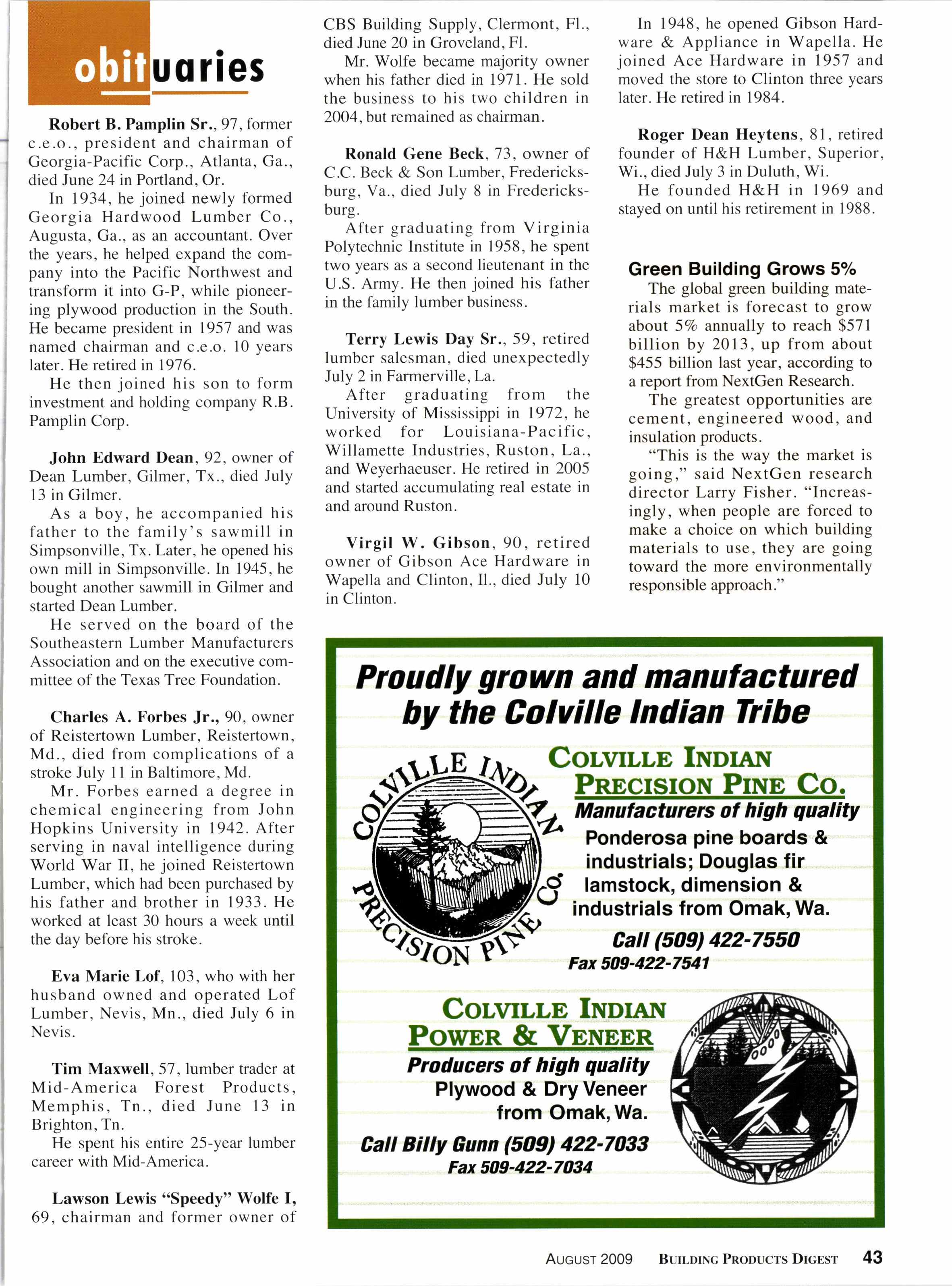 Coastal Lumber Co. .....800\735-2727 Coastal Plywood.... ......(800) 359-6432 Commonwealth Wood Preservers...............1757) 247-3621 Crumpler Plastic Pipe...................................(800) 334-5071 Diorio Forest Products (Va.).........................(877) 434-6746 Fiber Composites, LLC .............,..................(7041 463-7120 Hoover Treated Wood Products...................(800) 531-5558 Morgan Lumber Co. .....(434) 735-8151 PPG Machine Applied Coatings...................(757\ 546-2230 Smith Millwork, Inc. ......,...............................(336)