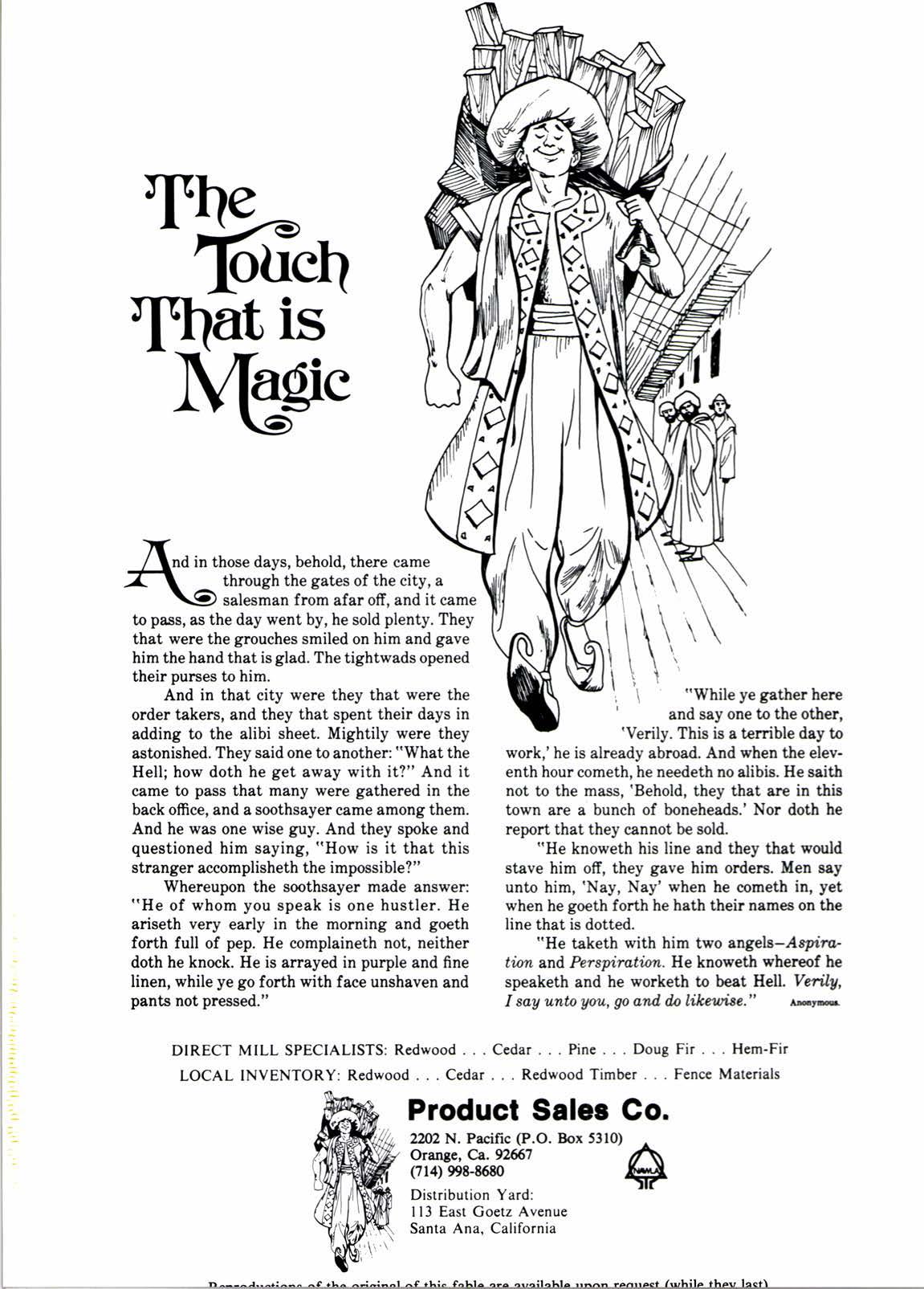 Through my experiences, I'll be able to demonstrate how to make your advertising functions run more smoothly, be more cost effective, and more sales productive. But . it's you who will have to implement the programs that we both agree are necessary. I guess I mean this as kind of a warning. Yorr responsibility doesn't end when you call me to come visit your operation. It really begins when I leave.