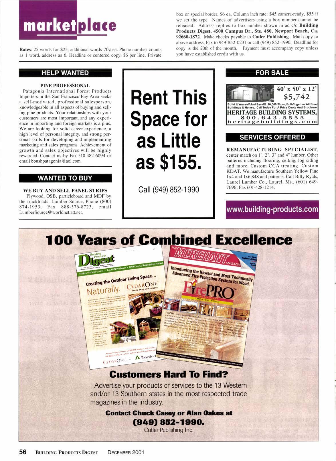 A year ago in December, I was sitting a few thousand miles away contemplating moving to Southern California and thinking of entering a new industry-the lumber and building industry-a radical departure from what I had been doing for the last few years. With a great deal of trepidation, as we all go through when contemplating major changes in our lives, I went ahead after a calculated decision process, never contemplating the number of new friends I would make in this industry in such a short time. Never could I imagine so many people caring about my success or the success of our magazines. It has been refreshing and rejuvenating to be supported by so many people in this industry. This is an industry of honest-to-goodness values that we should all be proud of. Long may it stay this way-in fact, let's make sure it does.