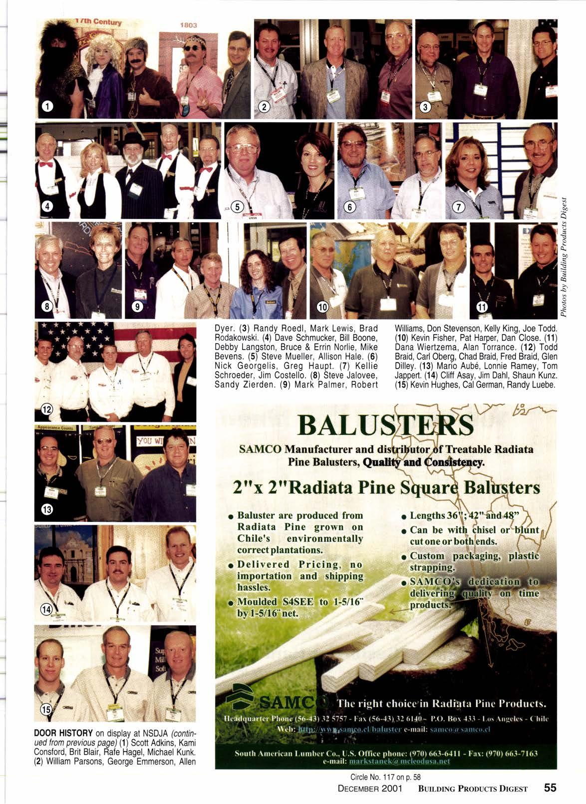 American Pole & Timber C0...........................(713) 946.7939 American Wood-Preservers' Association.......(81il 326-6300 Booth Lumber C0.... ......(281) 449-0206 Bowie-Sims-Prange Treating Corp.................(800) 822-8315 Breco Wood Producls..........(800) 742-3093 (903) 868-1541 Burk Distribution Center .................................(800) 580.7748 Capital Lumber Co. .......(254J741-1727 Cedar Supply lnc. ..,.....,......,........... ................(2141 242-6567 Columns, Inc. ................(281) 485-3261 Easlex Forest Products .......(800) 533-3176 (281) 442-2591 East Texas Forest Products....,.,....................(800) 443-7883 International Paper.........................................(214) 934-4343 Jackson & Langford Wholesale lumber.........(800) 333-8418 Jordan Redwood, Lee Roy..(214) 357-7317 (800) 442-3396 Lumber Tag Specialties Co. (800) 770-0984 (281 ) 304-0771 Simpson Strong-Tie. ......(800) 999-5099 Spyder Inc............... ......(800) 231-5916 Terry Dislributors, Walter.....(7 13) 227 -6369 (800) 633-8235 Weyerhaeuser (Dallas)........(800) 527-3868 (972) 418-8665 Weyerhaeuser (Houston).....(800) 392-6354 (281') 931-1722 Unonn American Wood Preservers Institute..............(800) 356-2974 Chesapeake Trading Gr0up.................,.........(800\ 724-4074 Hoover Treated Wood Pr0ducts.................,...(800) 832-9663 Madison Wood Preseryers.............................(540) 948-6801 Rocky Top Wood Preservers, Inc............,......(540) 483-5264 Supreme Decking,... ......(800) 532-1323 Weyerhaeuser C0................(800) 552-7710 (804) 236-5500 Circle No. 1 18 ono,58 DeceMeen 2001 Burr-onc PRoDUCTs Drcnsr 57