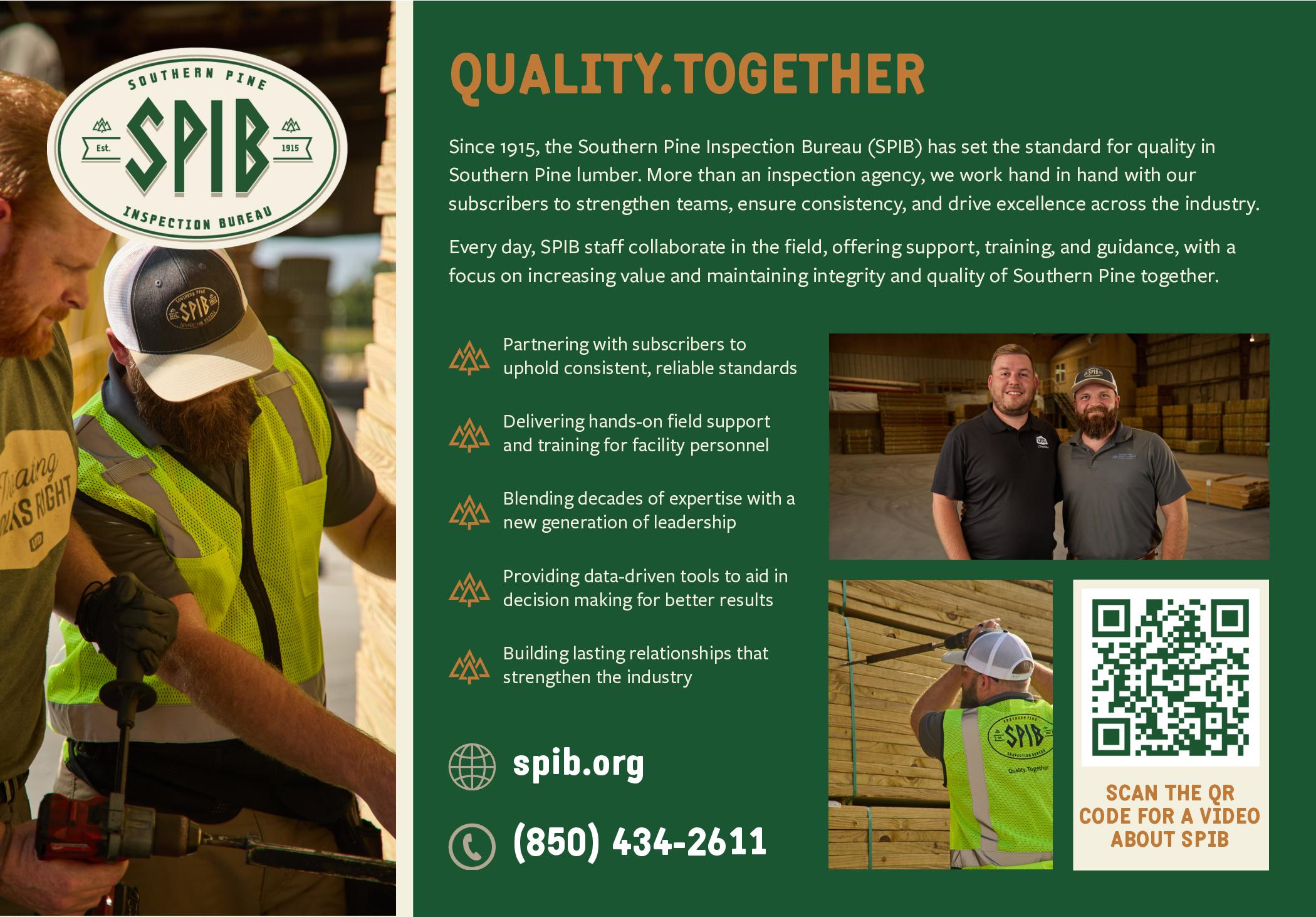 Along with internal testing, the treated wood is also tested by the preservative manufacturers for quality assurance and is subject to random testing and inspection by independent agencies such as Southern Pine Inspection Bureau and Timber Products Inspection. Additionally, the groups also test the chemical solutions to ensure the correct ratios are being used.