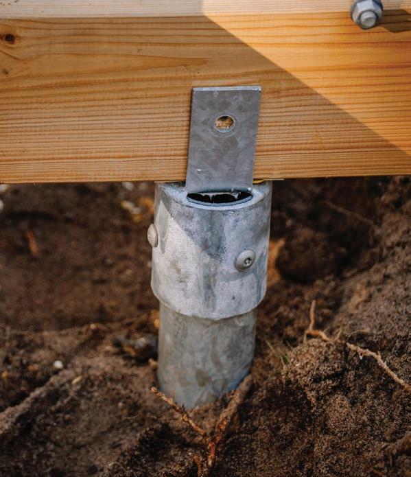 In Fredericksburg, MD., Brendan Casey builds in an area he calls “Fredrock,” where hard bluestone makes traditional footing work nearly impossible. “We can’t use helicals. What works for one area doesn’t work for another guy in a different area,” he says. Instead, he relies on critically treated posts designed to resist moisture for decades. “We dig the hole about 30” deep, add 12” of concrete, and set our posts on top of that concrete, then fill the hole halfway back up. We’re not worried about them getting wet or rotted out. We’re using a post designed to sit in fresh water for 25 years.”