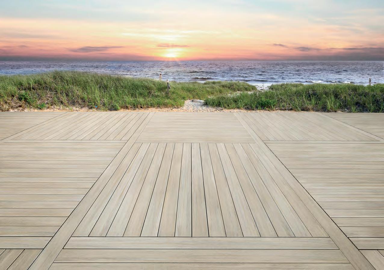 SOFT NEUTRALS are in demand for home exteriors. Trex Transcend Lineage decking features four nature-inspired hues, including a creamy taupe, deep mocha, light coastal brown, and airy mountain gray. (Photos by Trex)