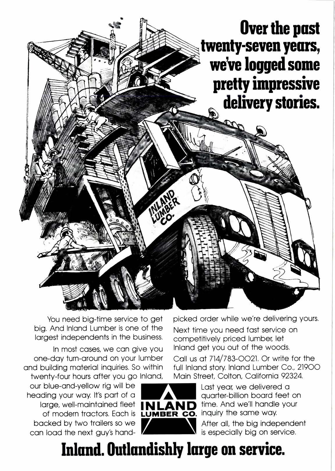 picked order while we're delivering yours. Next time you need fost service on competitively priced lumber let Inlond get you out of the woods, Coll us oI 714/783-OO2l, Or write for the full Inlond story Inlond Lumber Co,, 2l9OO Moin Street, Colton, Colifornio 92324.