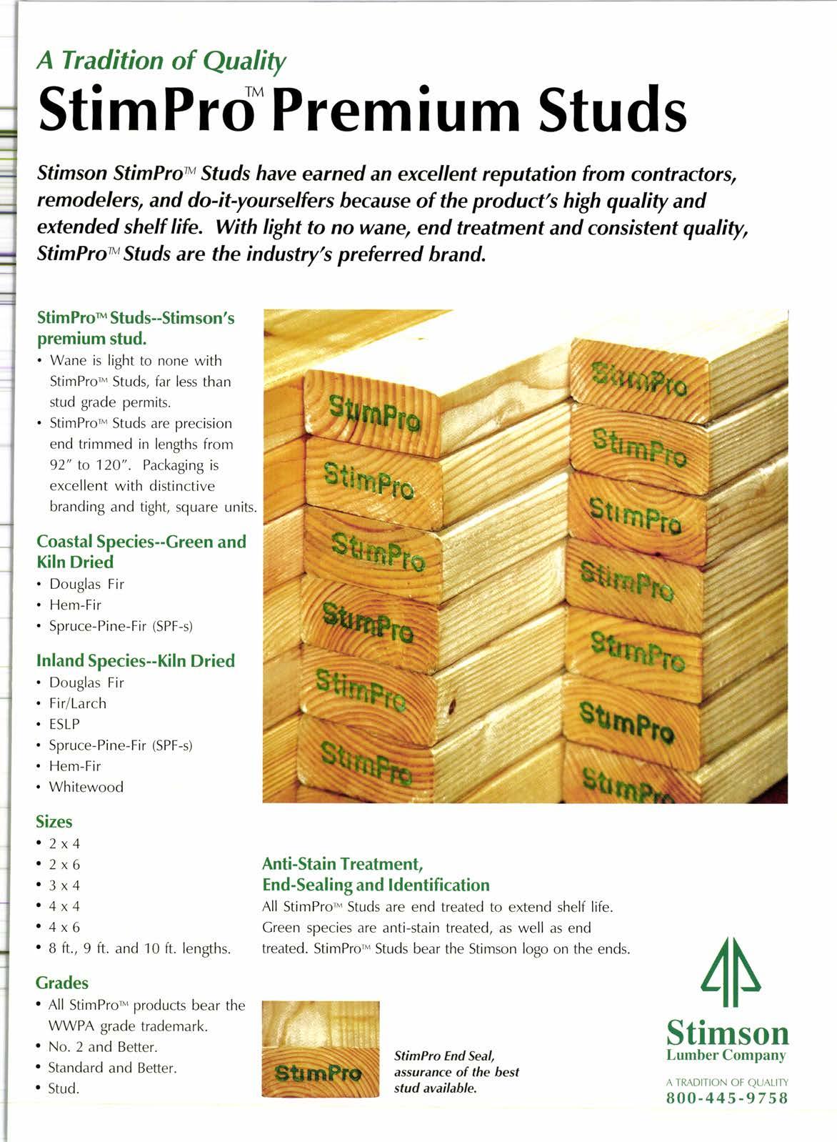 Stimson StimPro'" Sfuds have earned an excellent reputation from contractors, remodelers, and do-it-yourselfers because of the product's high quality and extended shelf life. With light to no wanet end treatment and consistent quality, StimPro'''Sfuds are the industry's preferred brand.