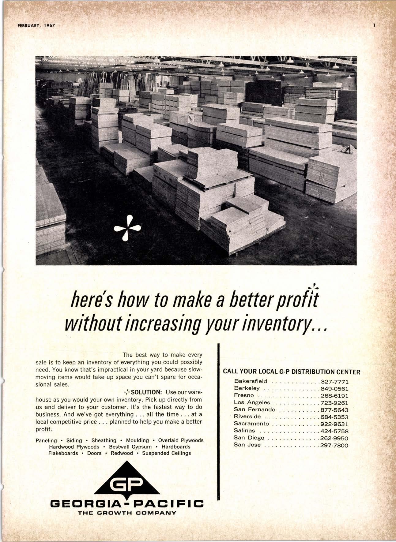 CALL YOUR LOCAL G-P DISTRIBUTION CENTER Bakersfield .327-777L Berkeley ... .849-0561 Fresno .. .268-6191 LosAngeles. . ...723-926L San Fernando ... ..A72-56,43 Riverside . . .684-5353 Sacramento .922-963L Salinas .....424-575A SanDiegq ...262-995C SanJose ...297-7eOO THE G;FICIVT'TH CclMPANY