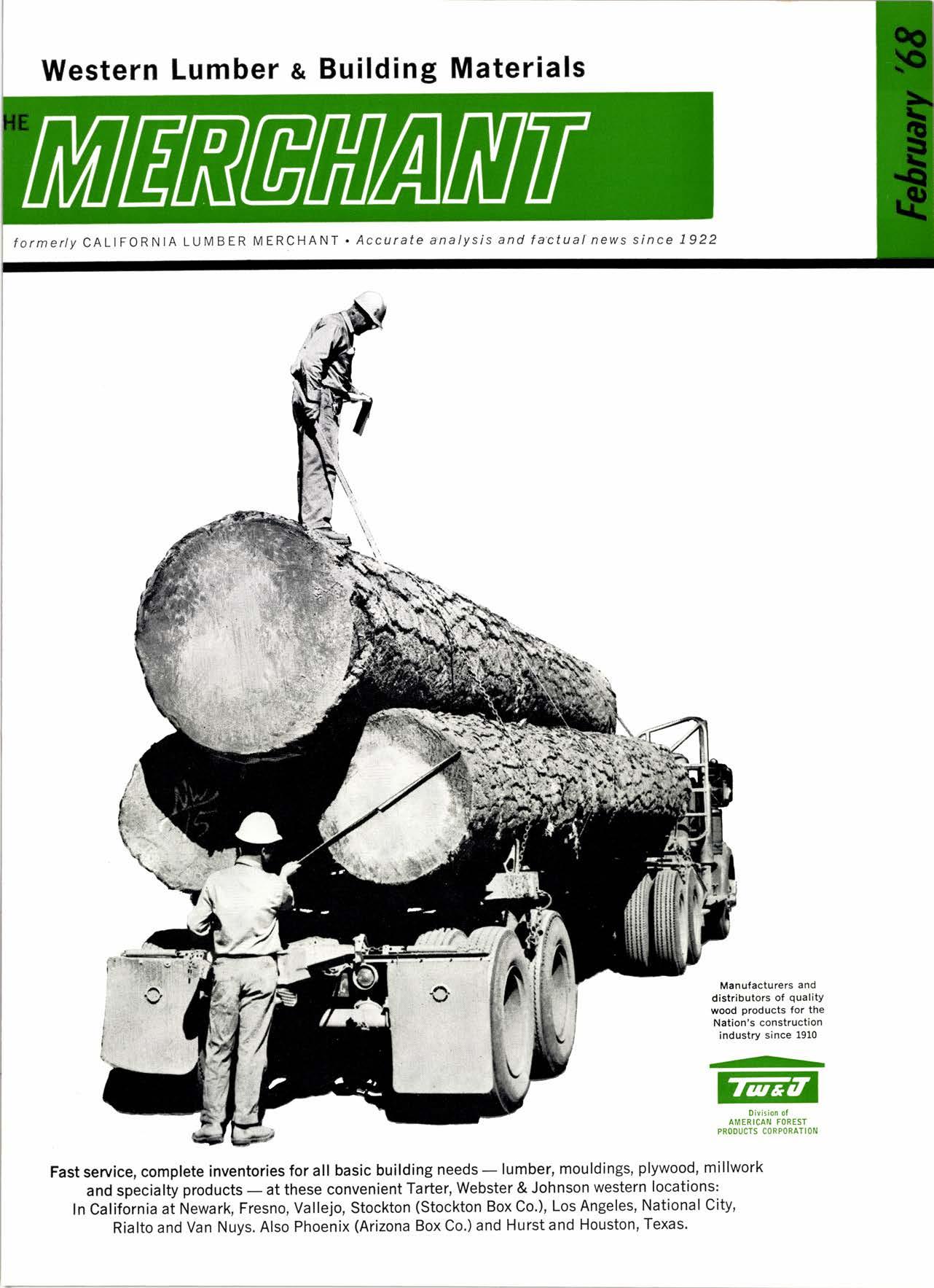 MATERIALS MERCHANT is Dub- lished monthly at 4t2 WoBt Sixth Streot, LoB Anselos, Callfornia 90014. Phone (213) MAilleon 2-4605 or MAd.lson 2-0670 by Calllornla Lumber Merchant, fnc-. Please ad- dress all corresDondence to offlce of publication. Second-class Dostage rates pald at Los Angeles, Cal. Advertlslng rates upon requeSt. Subscrlptlon Botoe-U.S., Canada. Mexico and Latln Amerlca: S4one year; lFl-two years; gg-thiee year8. OverseaS: S5 - one year; g8two years. Slngles coples 50/. Back coples ?5t when avallable. Chalge of Addrees-Send subscrip- tion orders and address ehanses to Clrculatlon DeDartment. We-stern Lumber & Buildlns Materlals Mer- chanL 4U, West Slxth St.. Los An- geles, Callf, 90014. Include ad- dress label from recent lssue lf posslble, plus new address, zone number or zip code.