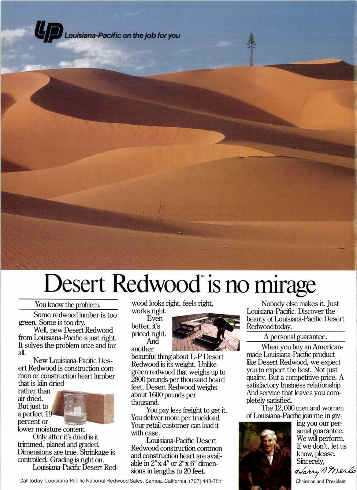 When you buy an Americanmade Louisiana-Pacific product Iike Desert Redwood, we expect you to expect the best. Not just quality. But a competitive price. A satisfrctory business relationship. And service that leaves you completeb satisfied.
