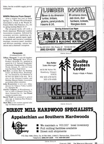Serving the lumber and home center markets in 13 Western StafesSin ce lg22 13 10 14 FEBRUARY 1995 voLUME 73, NO.8