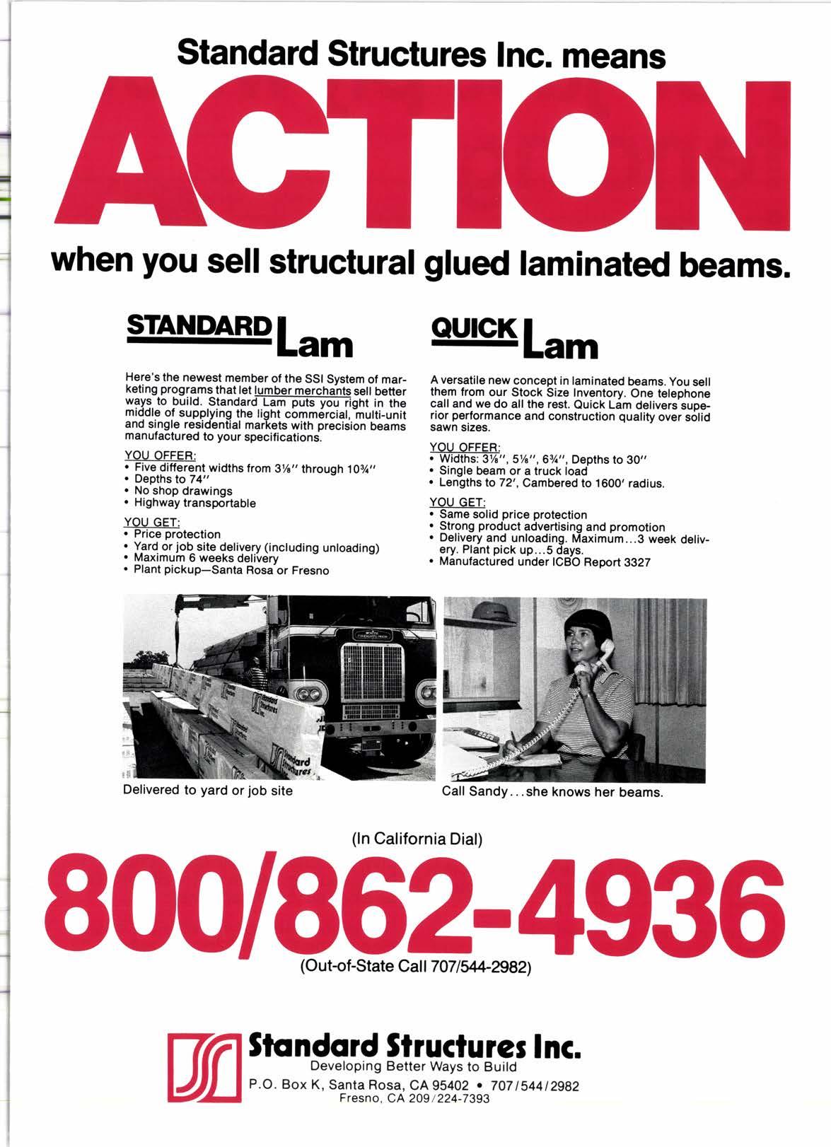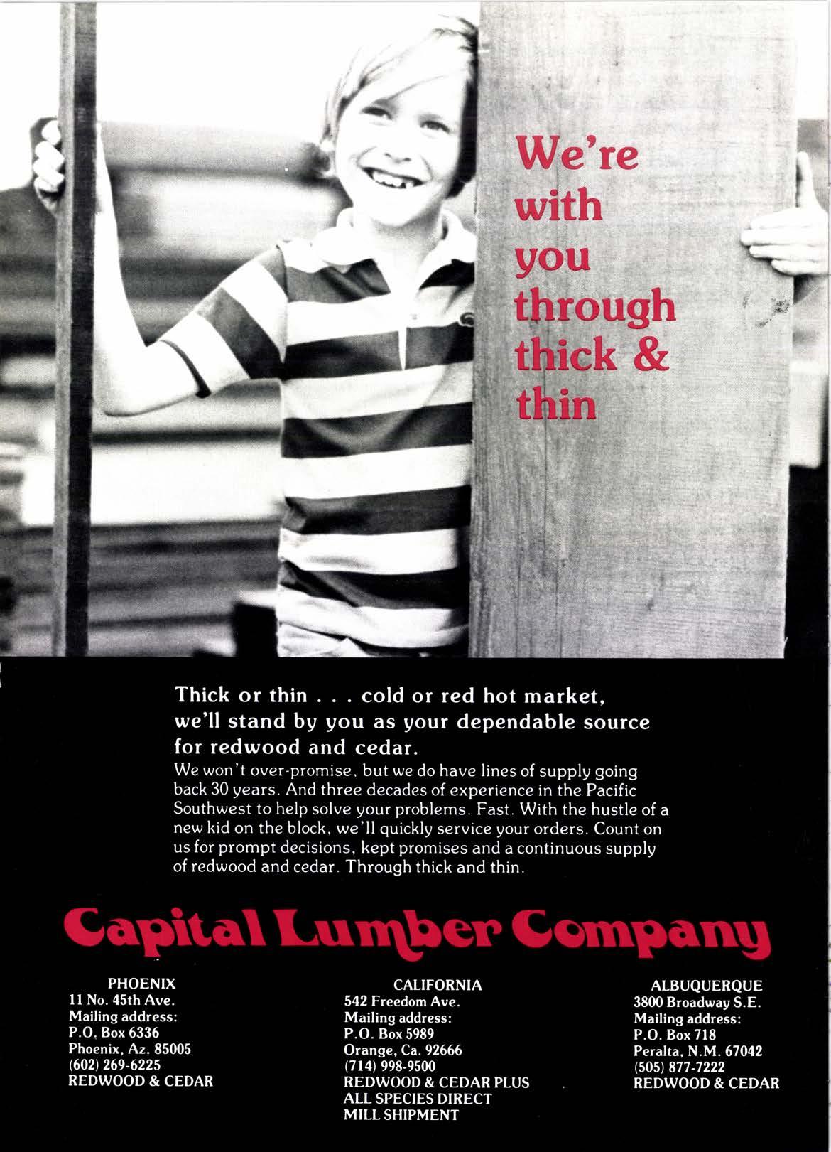 PRESSURE TREATING CHANGES HANDS A REDWOOD PRODUCER STRETCHES SUPPLIES USING A COMPUTER TO CONSERVE WALNUT 8 10 12 14 16 27 28 31 32 34 36 38 40 40 46 74 SERVICES CALENDAR CLASSIFIED ADS EDITORIAL PAGt NEWS BRIEFS NORTHWEST NEWS THE SOUTHLAND BUYERS GUIDE 78 ADVERTISERS INDEX 8O 20 77 DEPART]UIENTS 24 44 58 73 80 6 18 22 22 LMA NEWS & VIEWS PERSONALS NEW PRODUCTS NEW LITERATURE OBITUAR IES WRIIT€N PERTAISSION '*UST BE OBTAINEO FOI REprooucTroN of nAlEilA[ rN rHrs rssuE DIRECT TILL SPECIALISTS LOCAL II{YENTORY Redwood Doug Fir Redwood Timbers . . . Cedar . Fence Material Handsplit Rustic Posts and Rails FEATURING R & R OUALITY MACHINE SPLIT CEDAR FENCE PALINGS CUSTOT CEDAR PATIO TIIIBERS Product Sales Co. 3700 Newpon Boulevard Newport Beach, Ca. 92663 (714) 540-6940 (213) 687 -3782 Distribution Yard: 113 East Goetz Ave. Santa Ana, Ca.