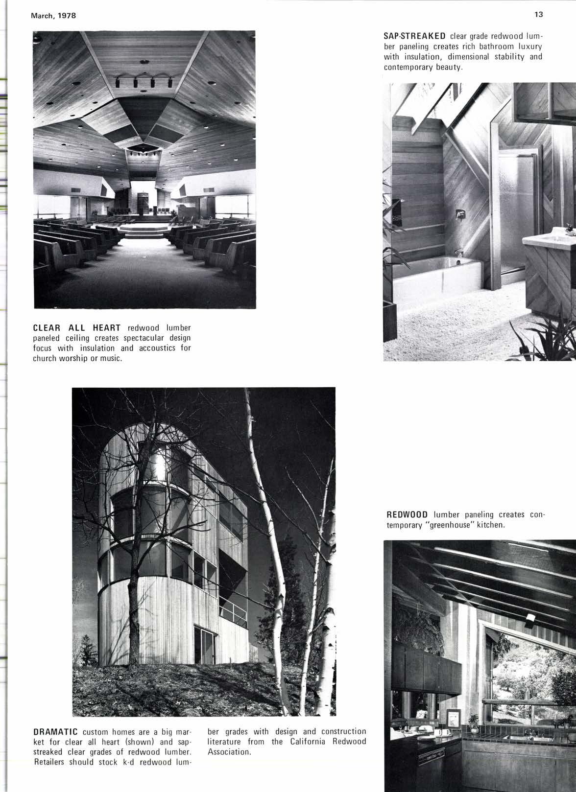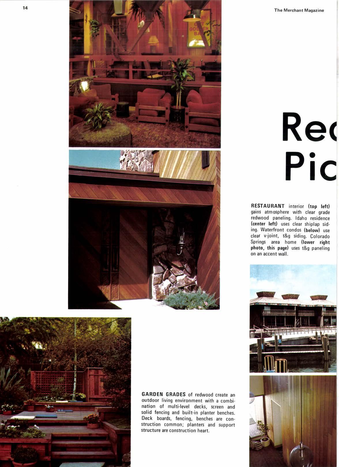 The universal uses of redwood mean hgger profits for you. Big ticket bu5s on the high end give your margins a healthy shot in the arm. And increasing customer demand, stimulated by the most odensive anay of merchandising aids in the industry, helps boost volume and improve ycur fums.
