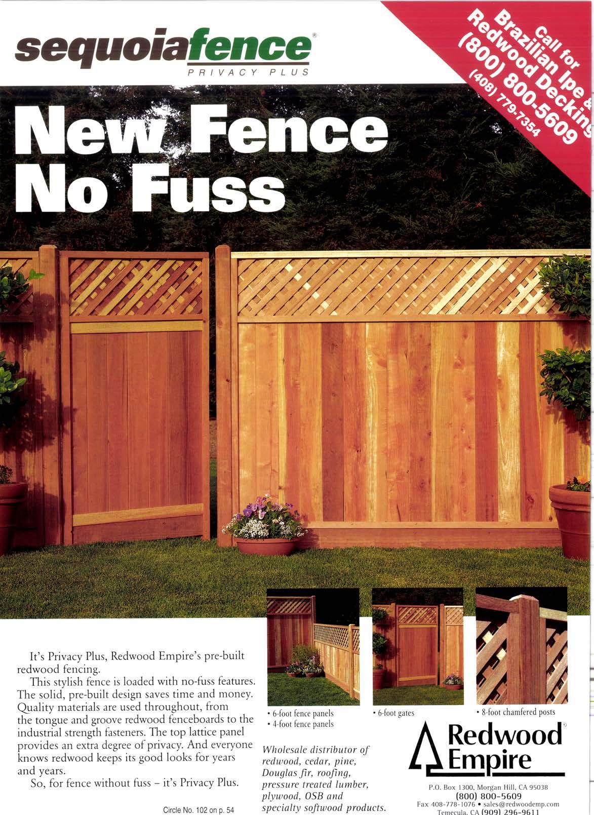 This stylish fence is loaded with no-fuss features The solid, pre-built design saves time and money. Qrality materials are used throughout, from the tongue and groove redwood fenceboards to the industrial strength fasteners. The top lattice panel provides an extra degree of privacy. And everyone knows redwood keeps its good looks for years and years.