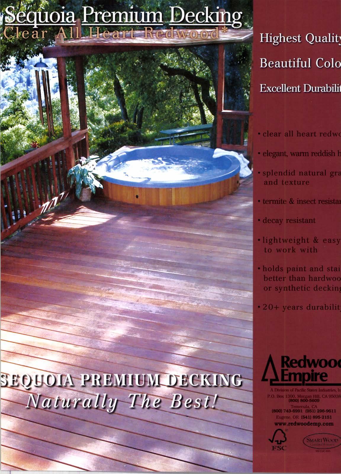 ! *"Uroood heartwood has natural resistance to decay and insects. The resistance to decay and insects in redwood heartwood is present throughout the lumber, not just on the surface. The wood exposed through sawing, boring or nailing is as decayresistant as the surface.