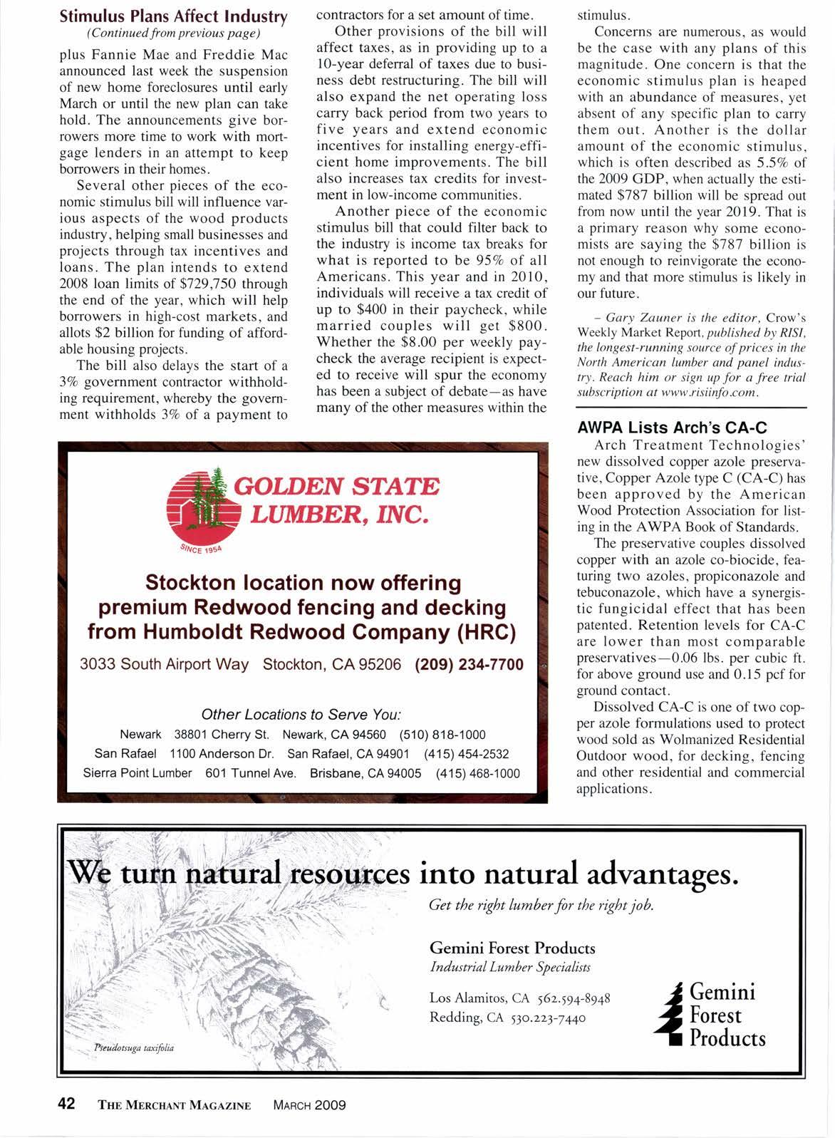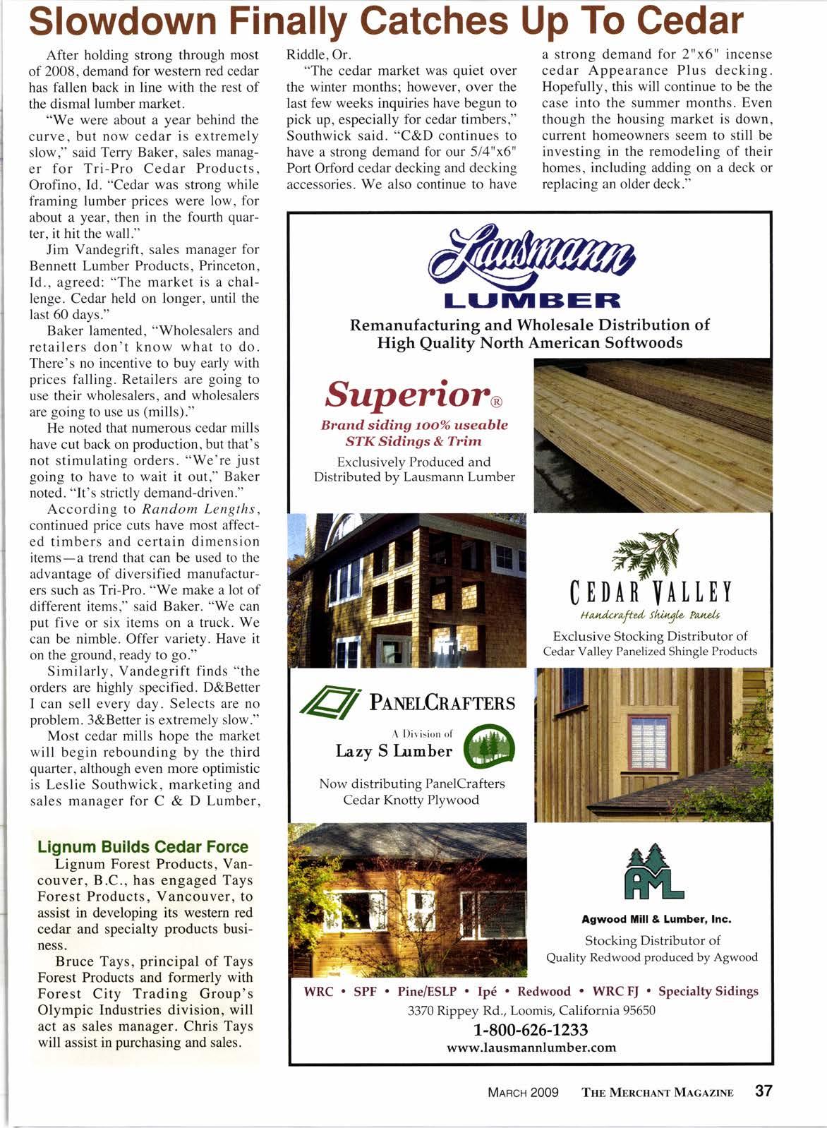 Mion also notes that CRA's "Build a Deck, Win a Deck" Promotion, which engages redwood retailers and debuted last summer in select northern California markets, is poised to expand this year.
