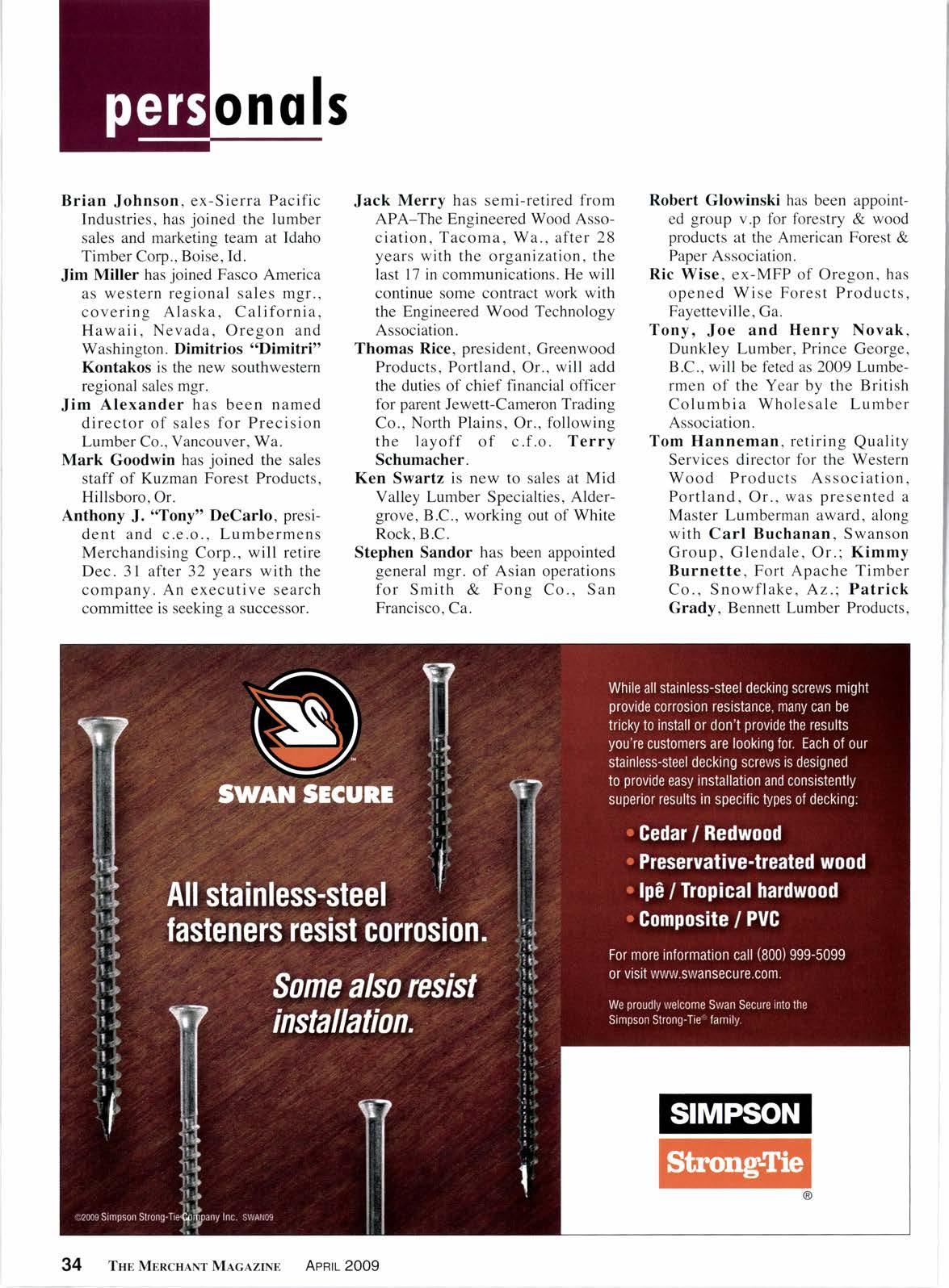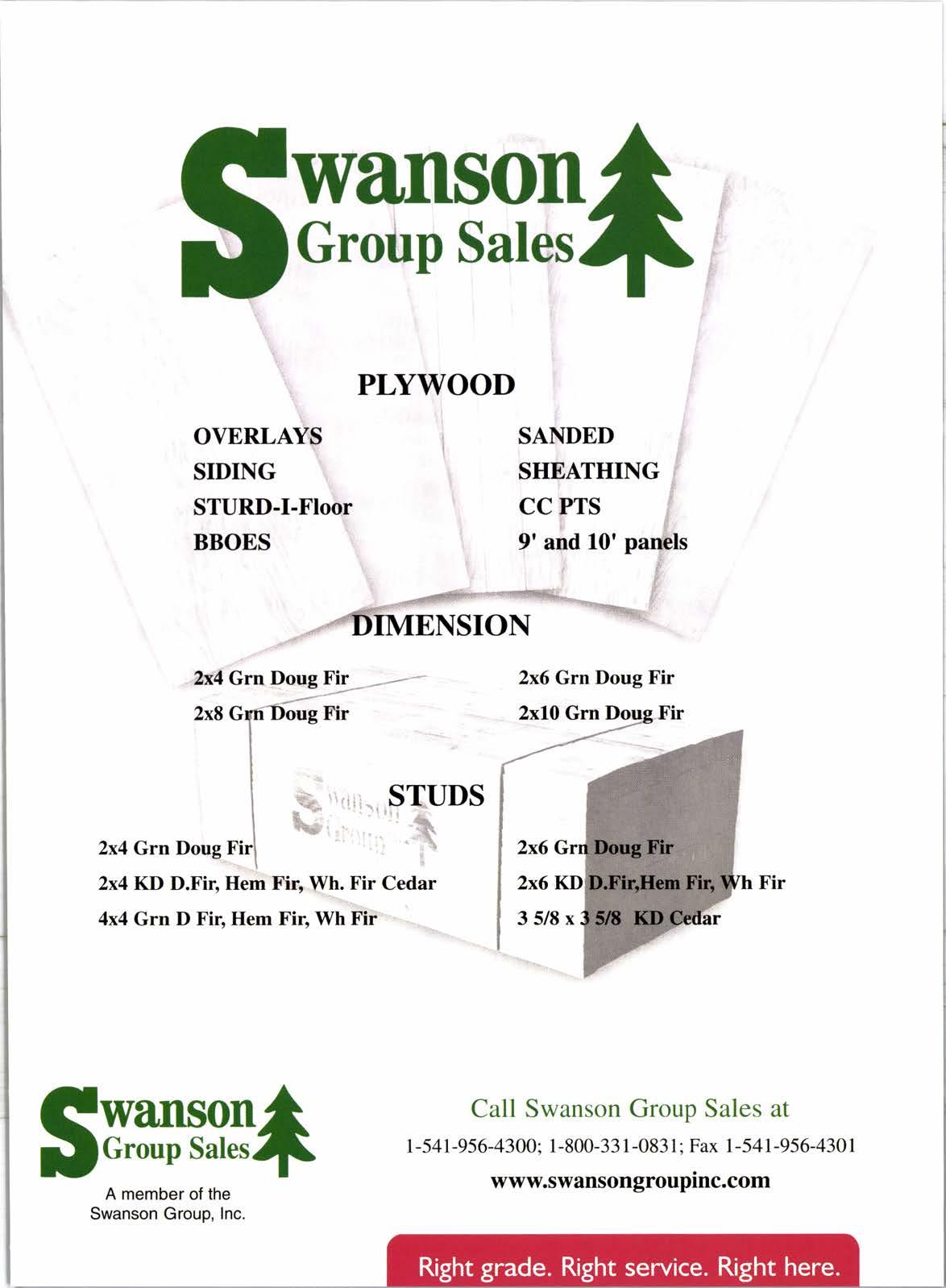 Swanson Group Sales [wwwswansongroupinc.com] ........Cover III
