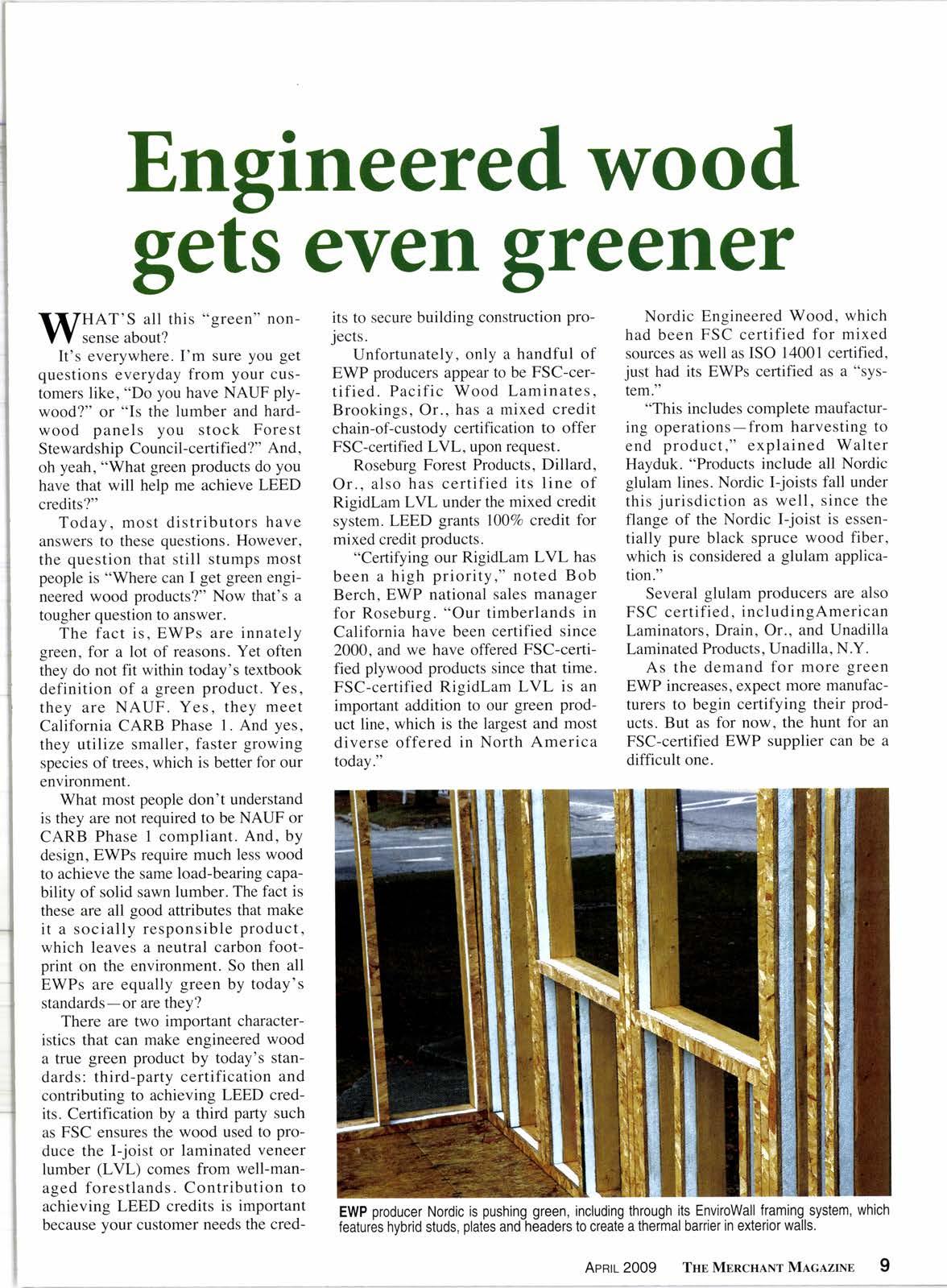 Reimer noted, "Another important benefit of this new technology is that it is the only treated wood process that is Environmentally Preferable Product certified based on life-cycle assessments. This certification is not only important to us, but also to our customers,"