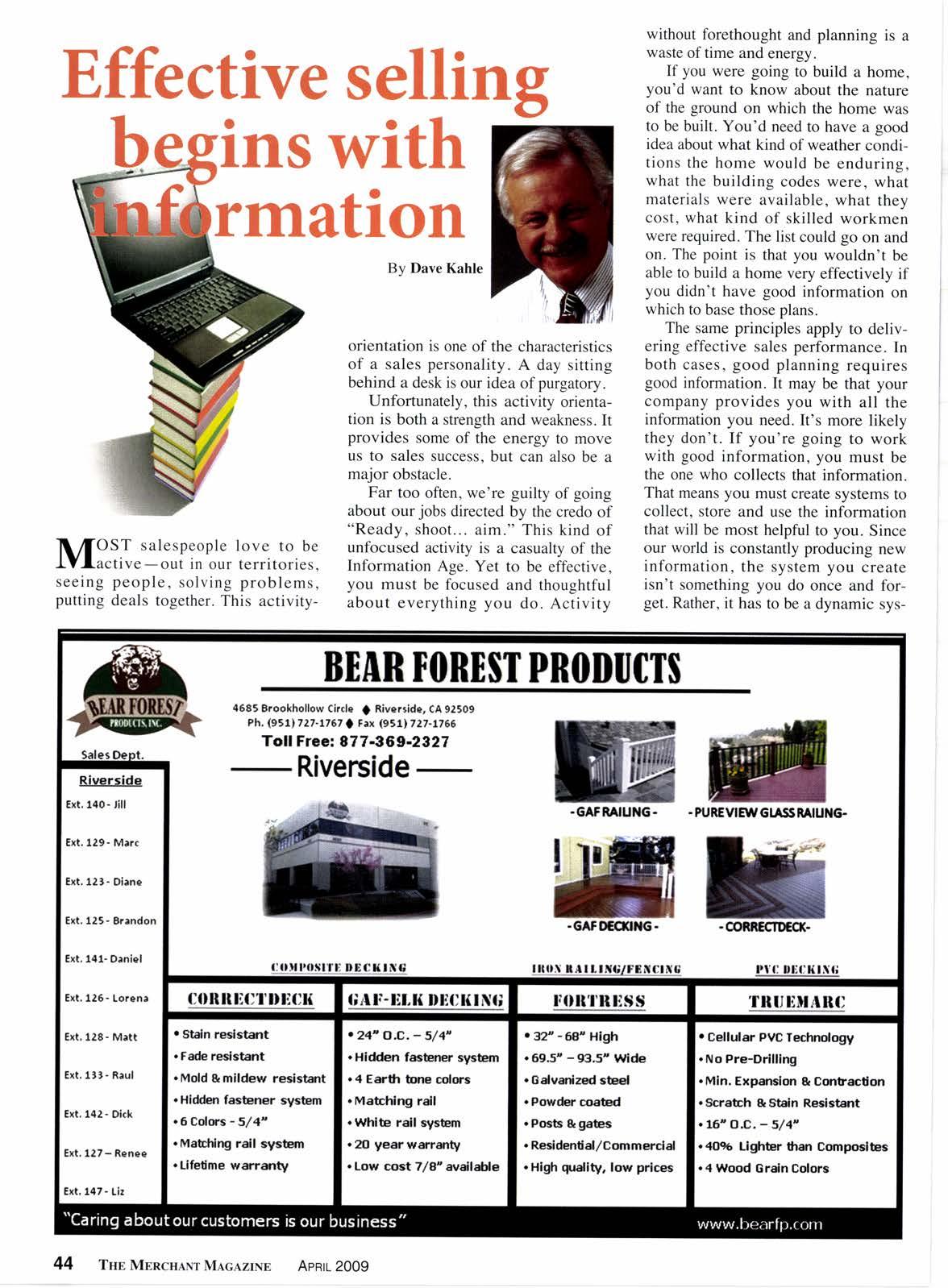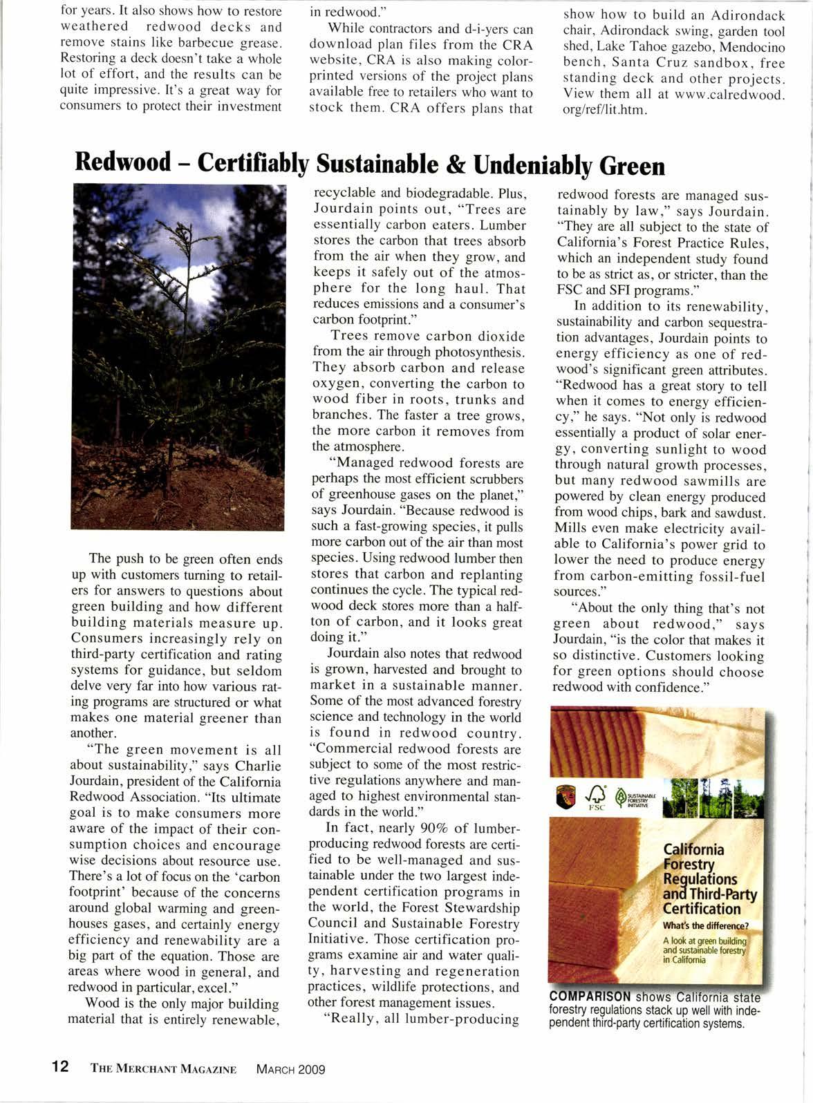 CRA encourages retailers to try the locator (www.calredwood.org/ref/ locate/locate.php) to ensure the association is providing a comprehensive listing for consumers. "We have made every effort to be all-inclusive," says Bob Mion, CRA marketing director, "but we recognize the possibility that