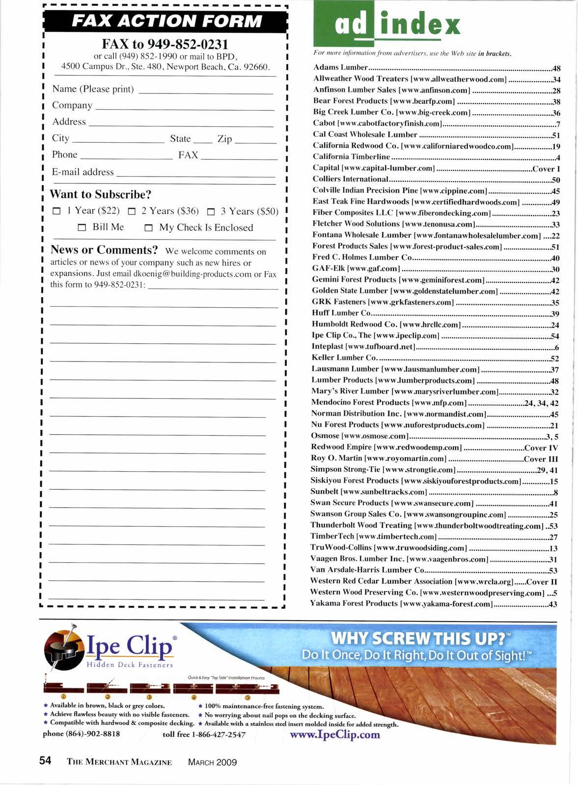 Conhcl our adycdisino oflices l0r ralos: llrEST, MIDWEST, S0UTHEASI: Chuck Casey, Newport Beach, Ca.; (949) 852-1990; Fu 949-8520231; Email ccasey@building-products.com
