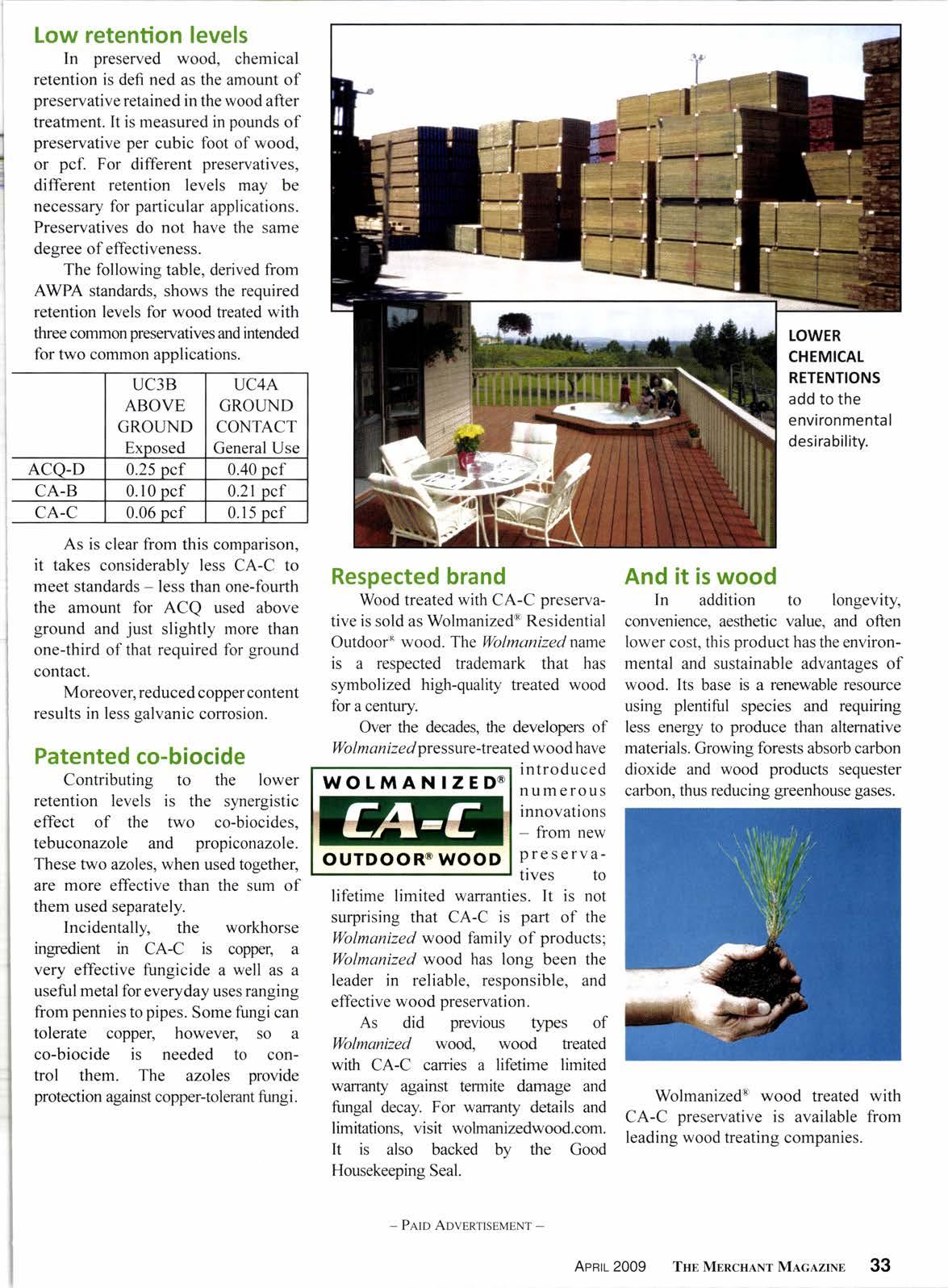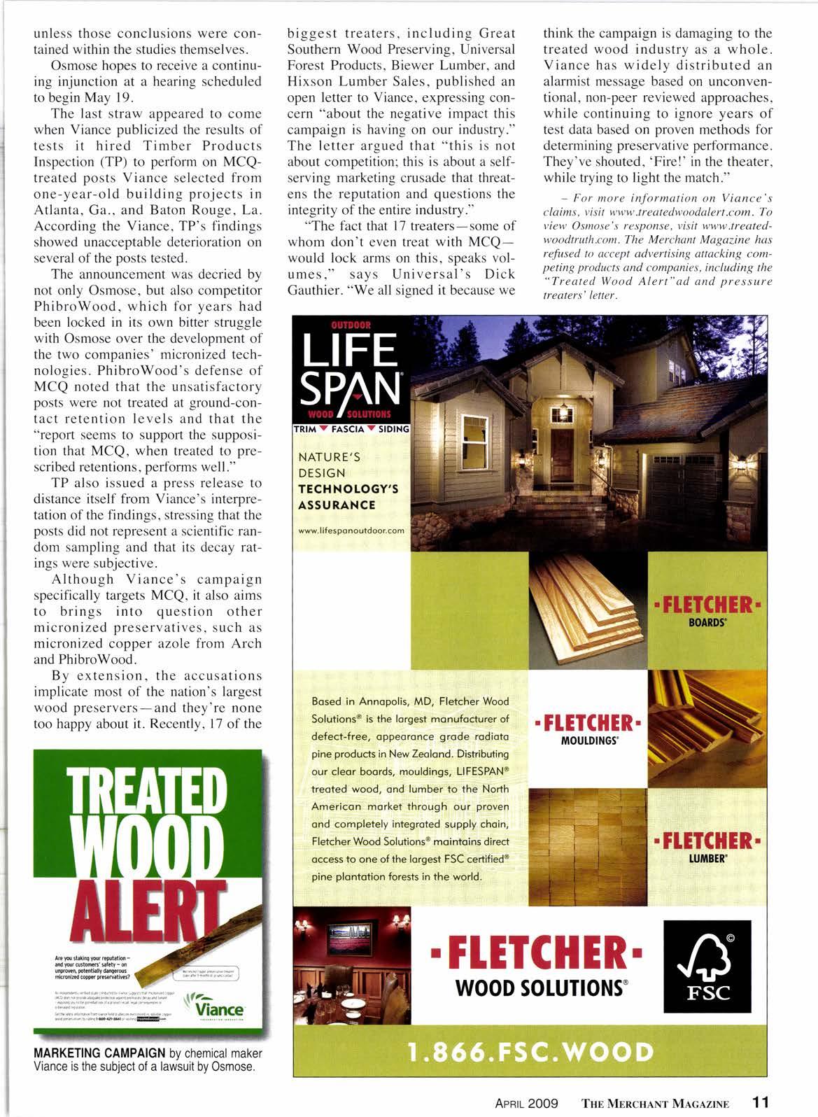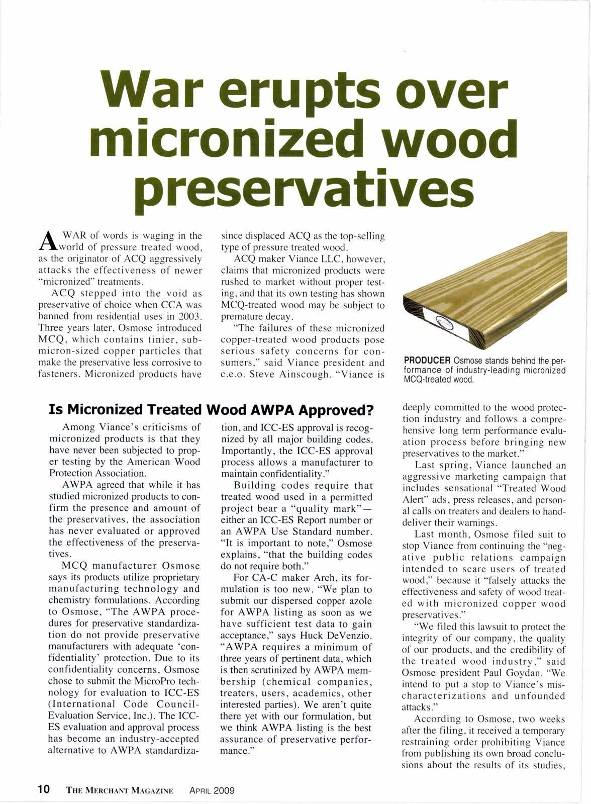 MicroPro has become so popular so quickly that it is now sold in over 4900 home centers and lumberyards, and competitors have since rolled out similarly altered preservatives, such as PhibroWood's Sustainwood micronized copper azole and Arch's Wolmanized dispersed copper azole.