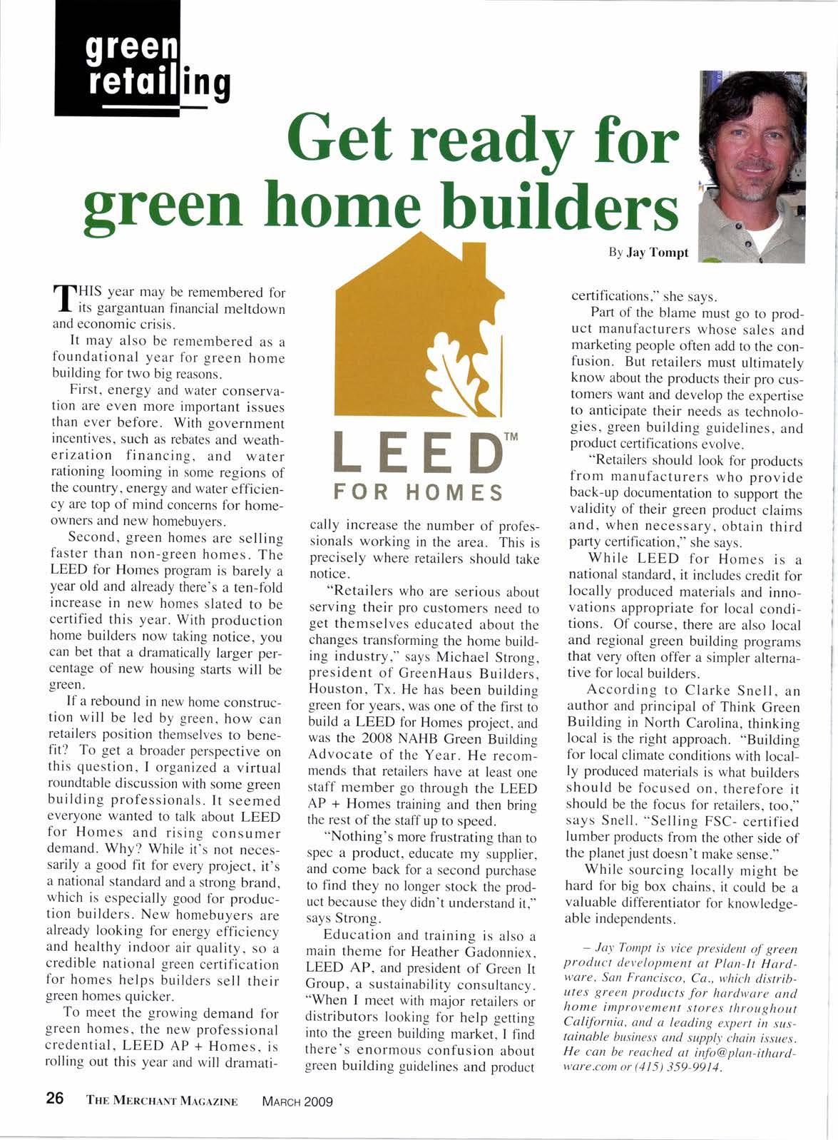 The push to be green often ends up with customers turning to retailers for answers to questions about green building and how different building materials measure up. Consumers increasingly rely on third-party certification and rating systems for guidance, but seldom delve very far into how various rating programs are structured or what makes one material greener than another.