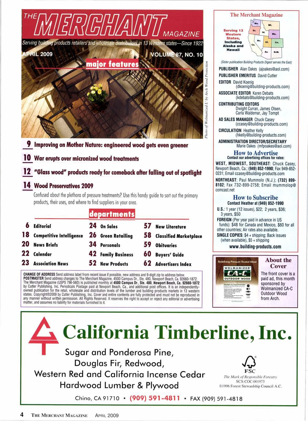 Arch Wood Protection [www.wolmanizedwood.com] Cover I, 13, 15, 17, 2I, 23, 32-33, Bear Forest Products Iwww.bearfp.com] .......................................44