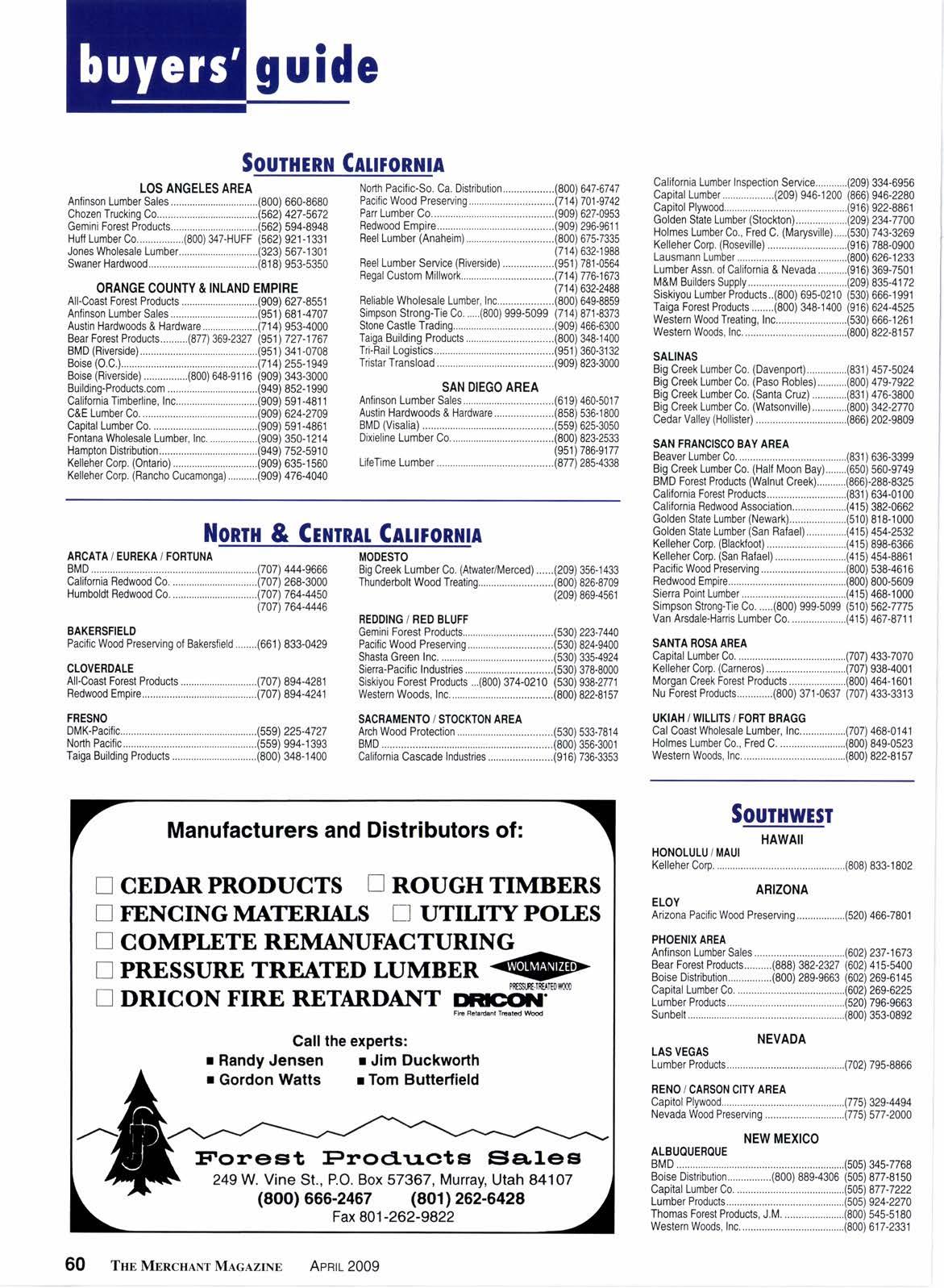 products and forests, to update its "online locator." Now a single-click service with current information, consumers need only to enter a zip code to find lumber retailers in their area that carry redwood products. Retailers carrying redwood are listed by proximity, nearest retailer first.