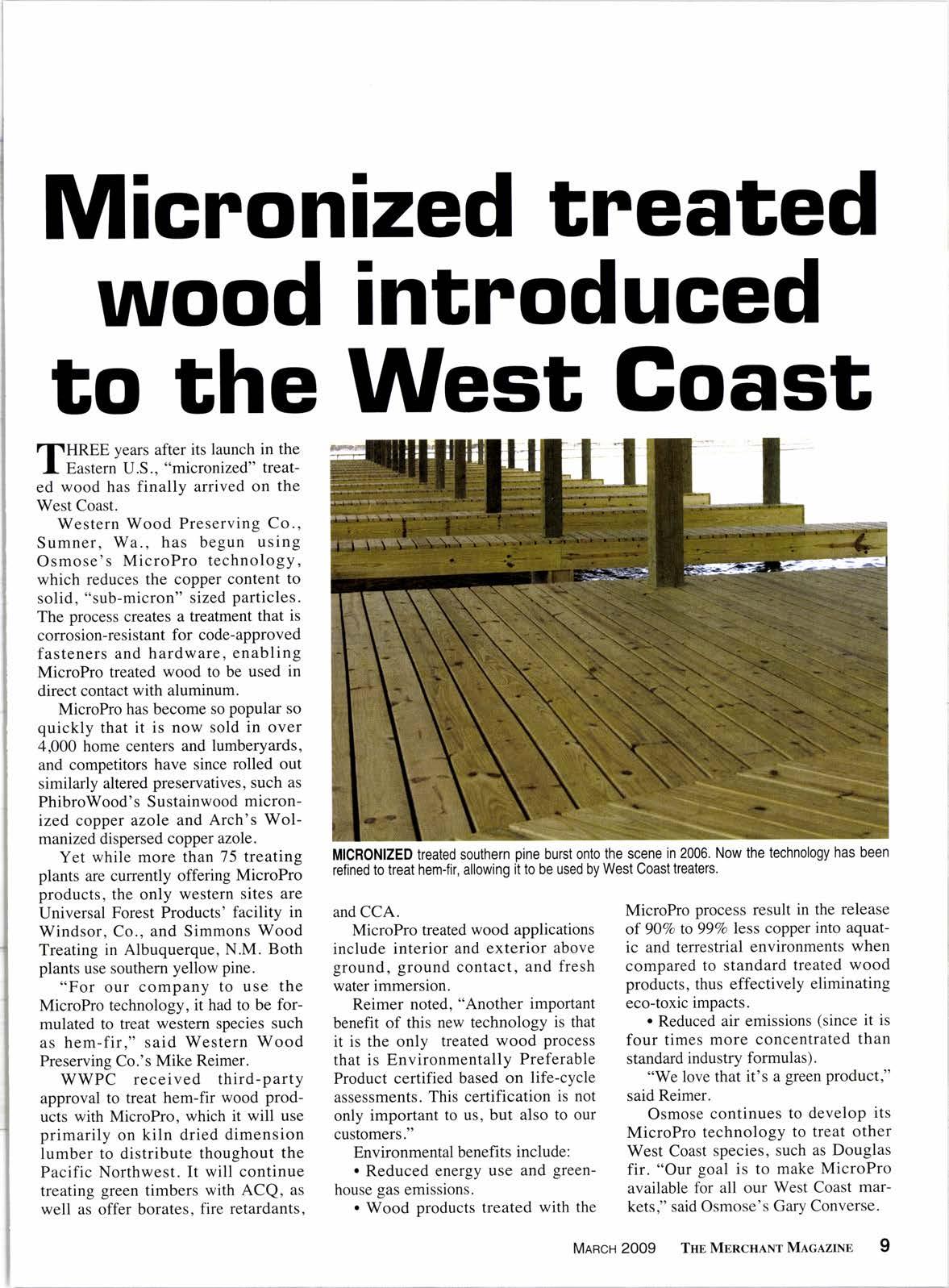 ITIHREE vears after its launch in the .1 gurt"- U.S.. "micronized" treated wood has finally arrived on the West Coast.