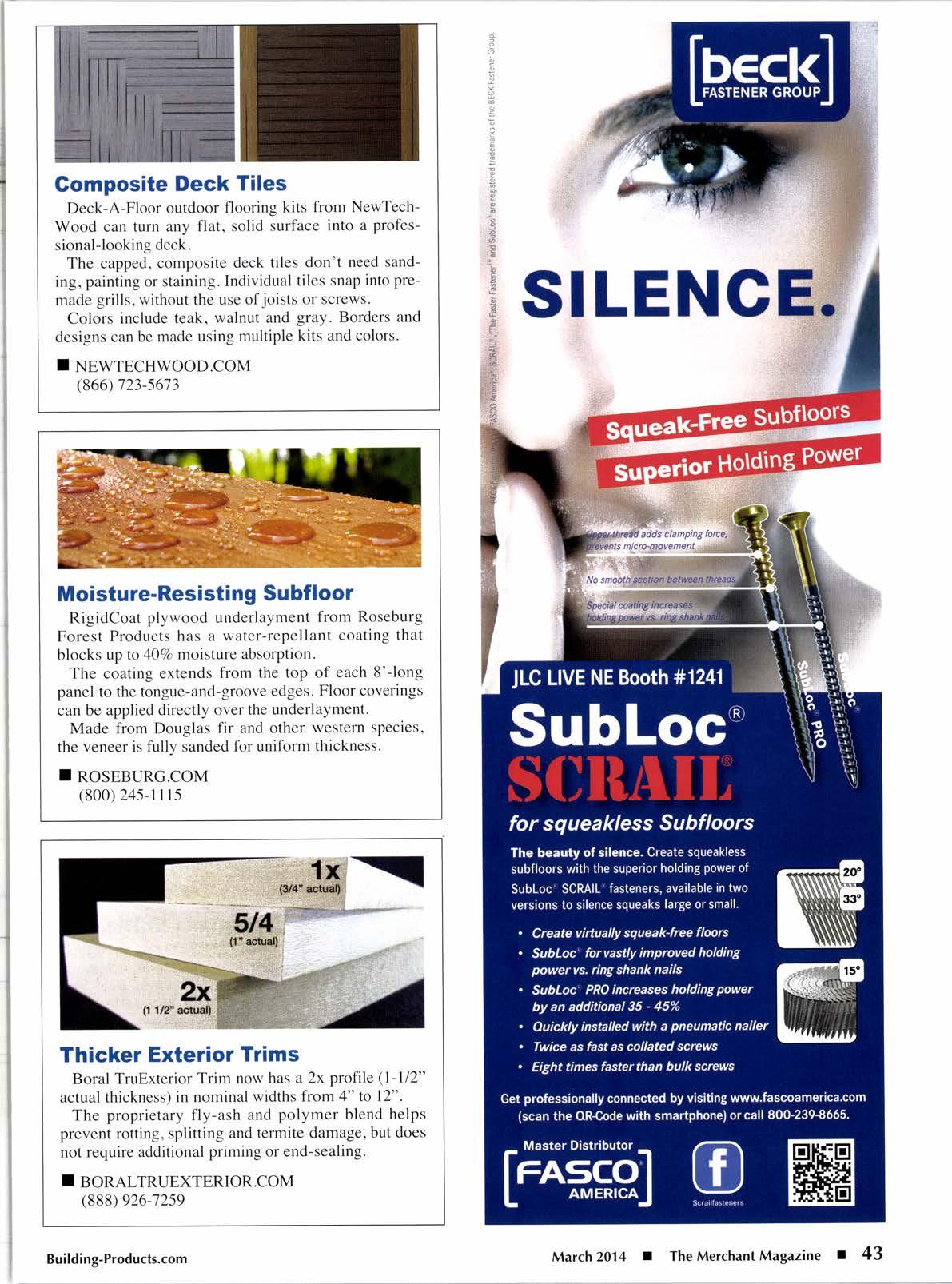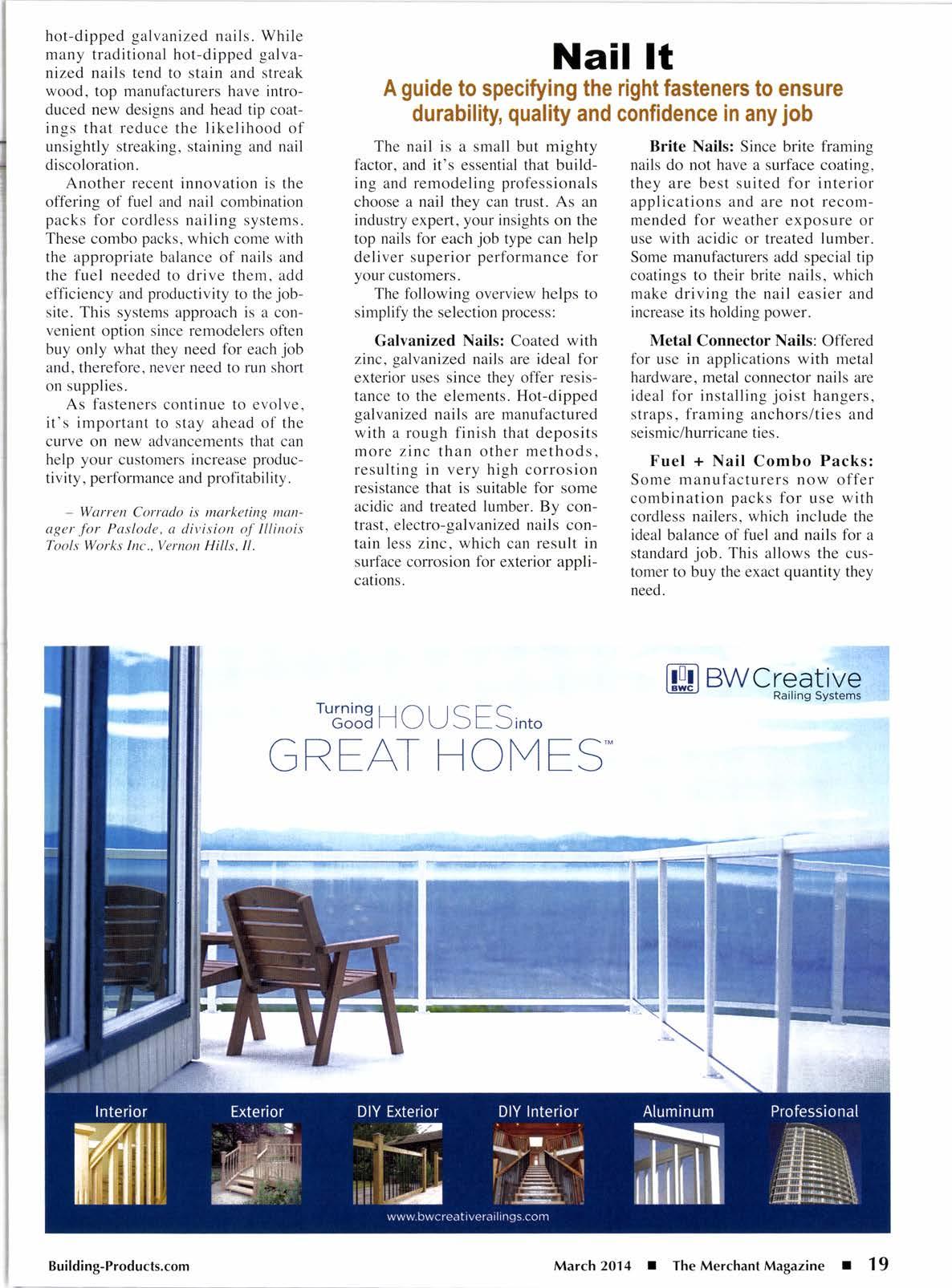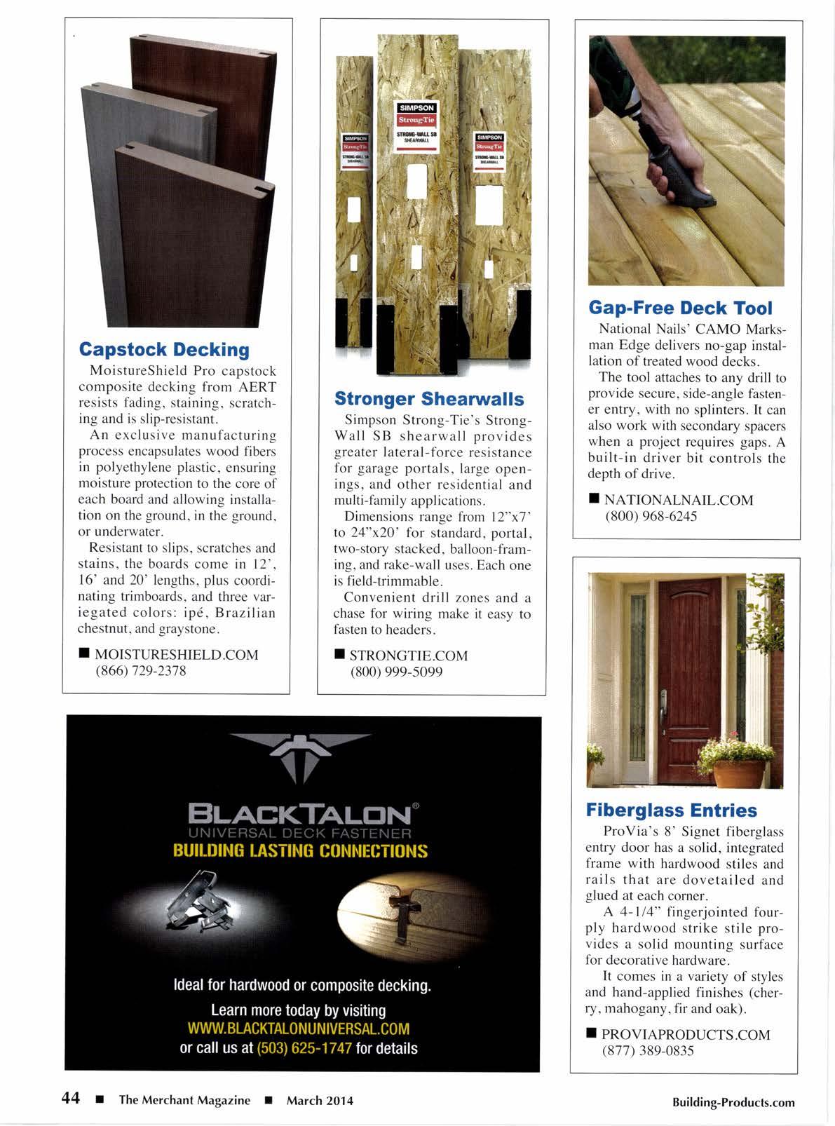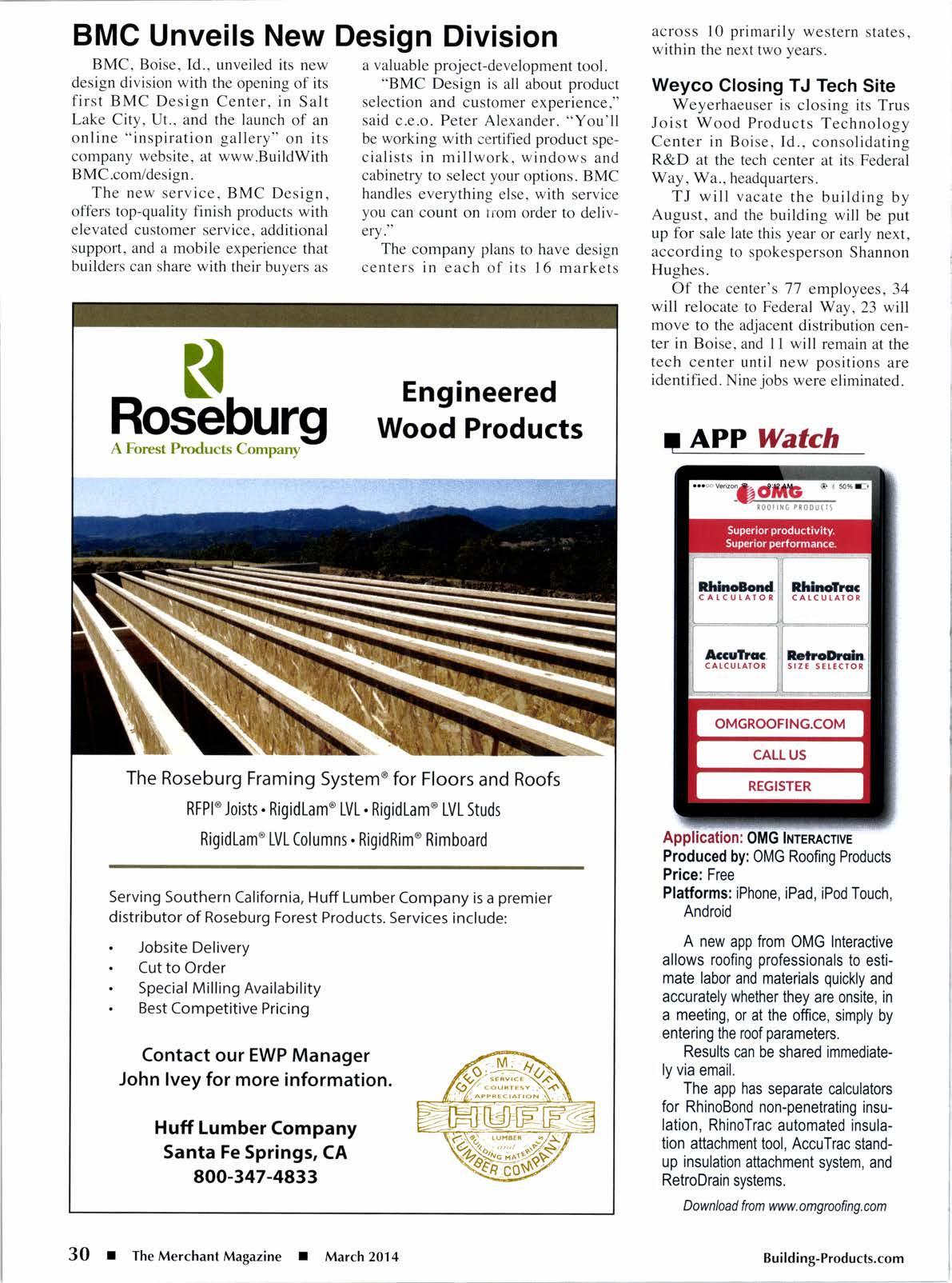 Ge ffiffi f,lf,iltc-PilII[lr$,, Colch up Eost of the Roches Sub*dbe to BPII Buildin0 Ploducts lligest Ju$ 524 for l2 monthly isues Confocl Heother ot (949) 852- | 990 hkelly@ building-producls.com 52 I The Merchant Magazine I March 2014 Building-Products.com