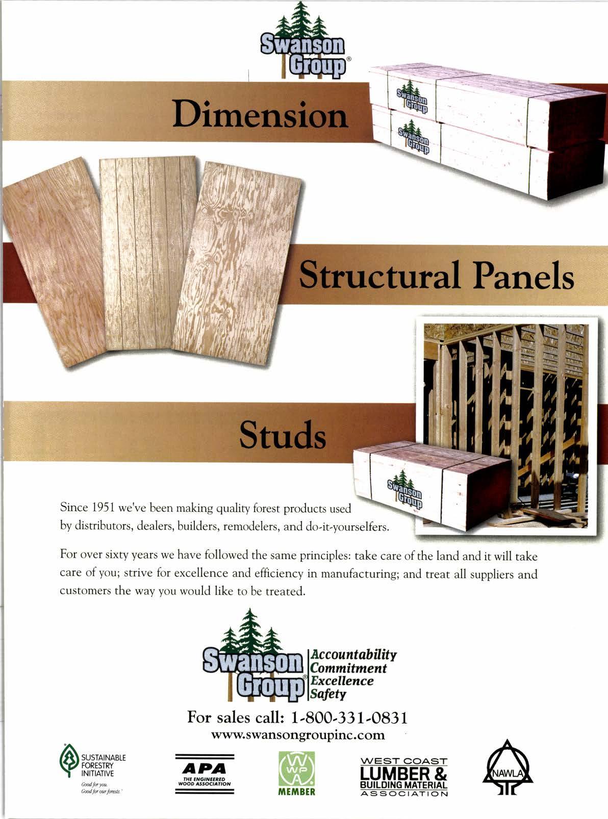 That all being said, it is interesting to hear some negative feedback and concerns within the industry. On the lumber side, many mills are telling us that they are l00Vo sold out-good for them but not necessarily good for the industry. When the industry starts growing again, then what? I am not hearing about too many plans to open new mills, bring back on line mothballed mills, or even add new shifts. Perhaps this is a reflection of not getting ahead of the game because of the fear we have lived through the past few years.