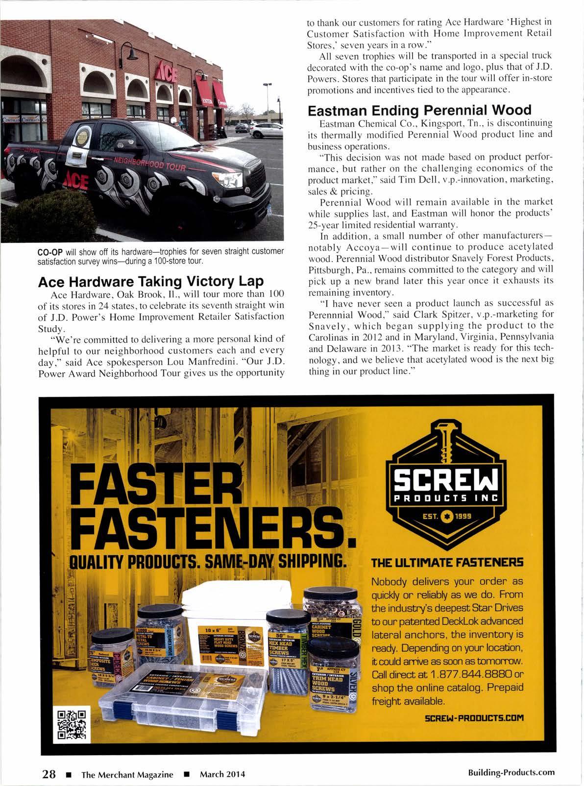 SrRNonnos 'l6 Pnooucr sPonrcHr CnrrronNrR Rrowooo Hrrs rHe Sunr 1B MnncrN Burlorns Crr n HnNorr oN FnsrrNrn Tne Nos 37 Pnoro Rrcnp: Borsr CnscnDE CoLF 48 Pnoro Rrcnp: IBS 6 TornLlY RnNoor'r 20 Coprprrrrvr lNrrurcrrucr 22 OLsrr.r Or Snlrs 30 Rpp Wnrcn 32 Movrns & Snnxrns 40 Nrw Pnooucrs 45 AssocrnrroN Uponrr 46 Flr..rLv BusrNrss 52 lN Mruonrnm 52 Cussrrrro Mnnxrrpucr 53 Dnrr Boox 54 lorn FrLr 54 Aovrnrsrns lruorx STAIN1ESS STBf,I. TASTXilf,AS Contractor Paclr/Blister Pa.ck/Stack Pa,ck JAACO CORN unrnrJaaco.com 426-44r-{'o,o,a $ffi 4 I The Merchant Magazine I March 2014 Building-Products.com