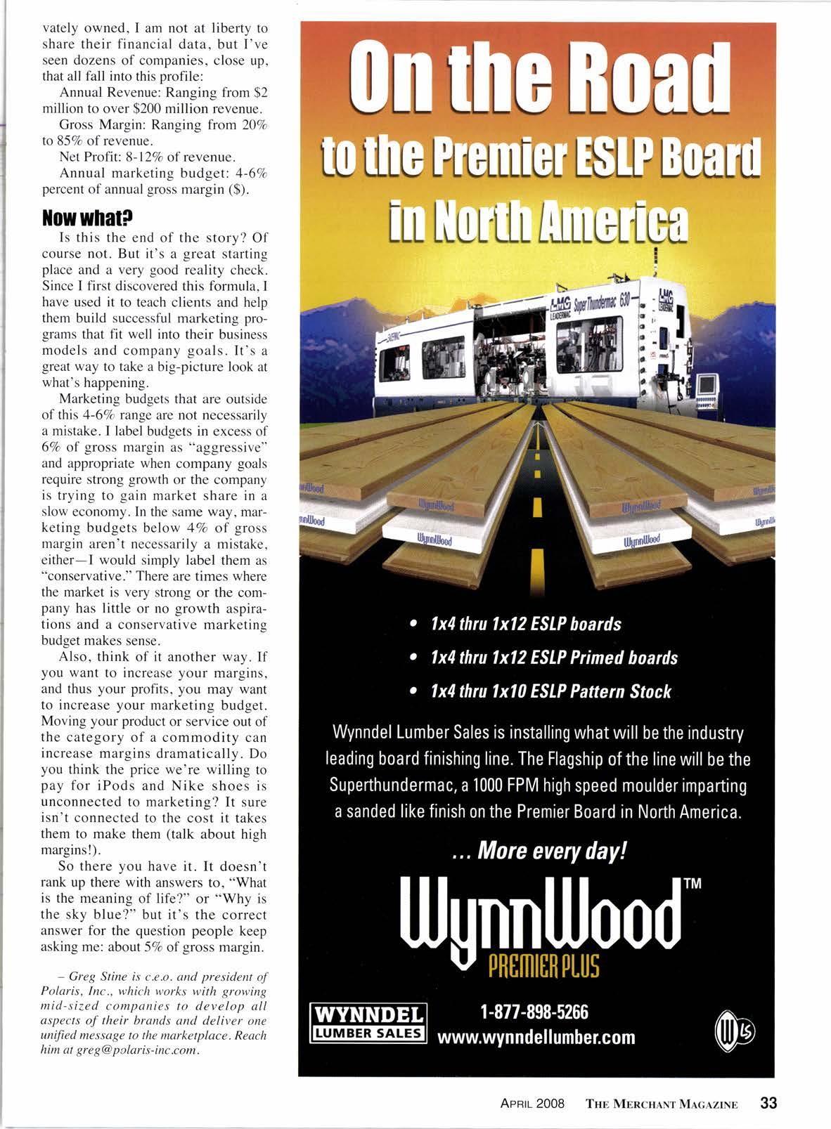 CHANGE 0F AD0RESS Send address label from recent issue if p0ssible, new address and 9-digit zip t0 address below. PoSTMASTER Send address changes to The Merchant Magazrne,4500 Campus Dr., Ste,480, Newport Beach, Ca.92660-1872. The Merchant Magazine (USPS 796-560) is published monthly at 4500 Campus Dr., S|e.480, ilewport geach, Ca. 92660-1872 by Cutler Publishing, lnc. Periodicals Postage paid at Newport Beach, Ca., and additional post offices. lt is an independentlyowned publication for the retail, wholesale and distributi0n levels 0f the lumber and building products markets ln 13 western states. Copyrighl@2008 by Cutler Publishing, Inc. Cover and entire contents are fully protected and must not be reproduced in any manner with0ul written permission. All Rights Reserved. lt reserves the right t0 accept or reject any editorial 0r advertising matter, and assumes no liability for materials furnished t0 it. How much should you spend on mofteting? 6 TsB Mnncuanr MacazrNp Apnrr 2008