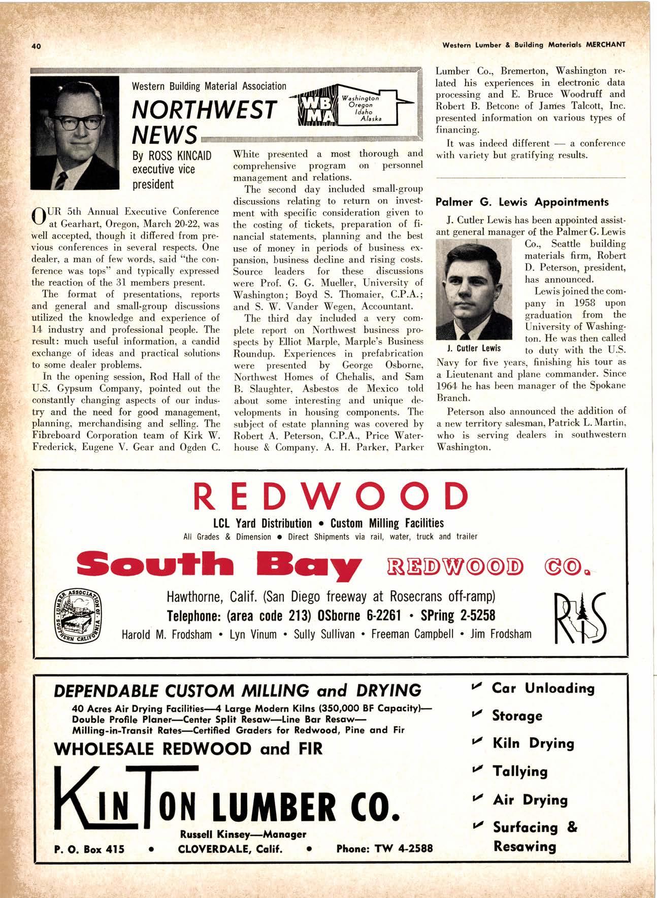 In the opening session, Rod Hall of the U.S. Gypsum Company, pointed out tht. constantly changing aspects of our industry and the need for good management, planning, merchandising and selling. The Fibreboard Corporation team of Kirk W. Frederick, Eugene V. Gear and Ogden C.