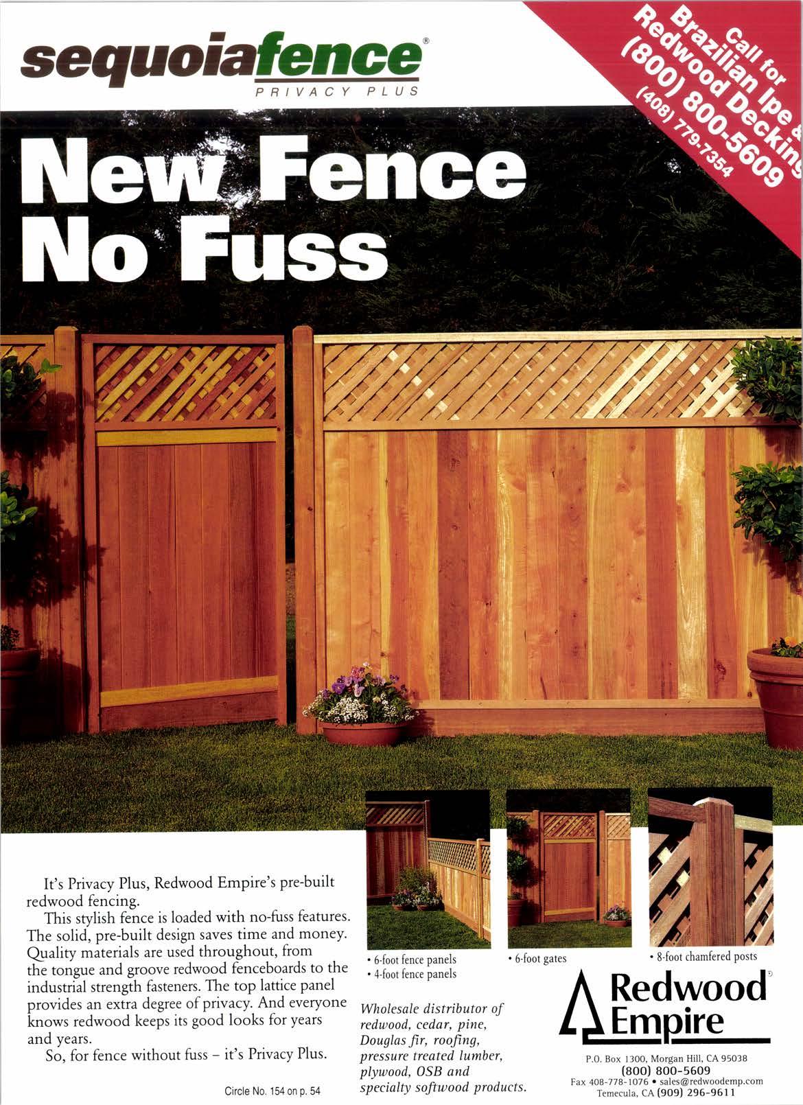 This stylish fence is loaded with no-fuss features. The solid, pre-built design saves time and money. Qrality miterials are used throughout, ftgthe tongue and groove redwood fenceboards to the industriil strength fasteners. The top lattice panel provides an extra degree of privacy' And everyone kno*s redwood keeps its good looks for years and years.