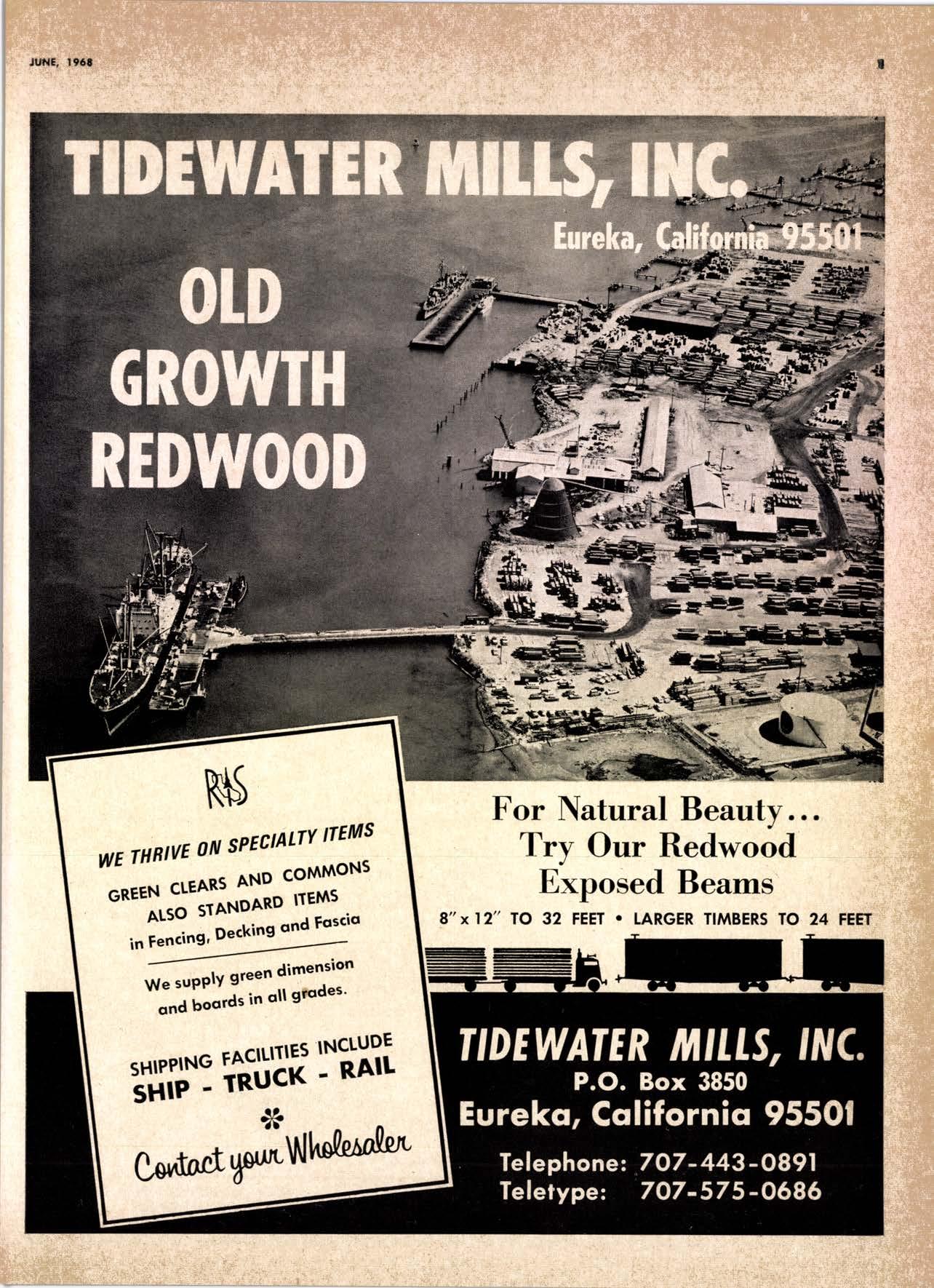 JUflE. 1968 For Natural Beaut/... Try Our Redwood Exposed Beams 8" x 12" TO 32 FEET . LARGER TIMBERS TO 24