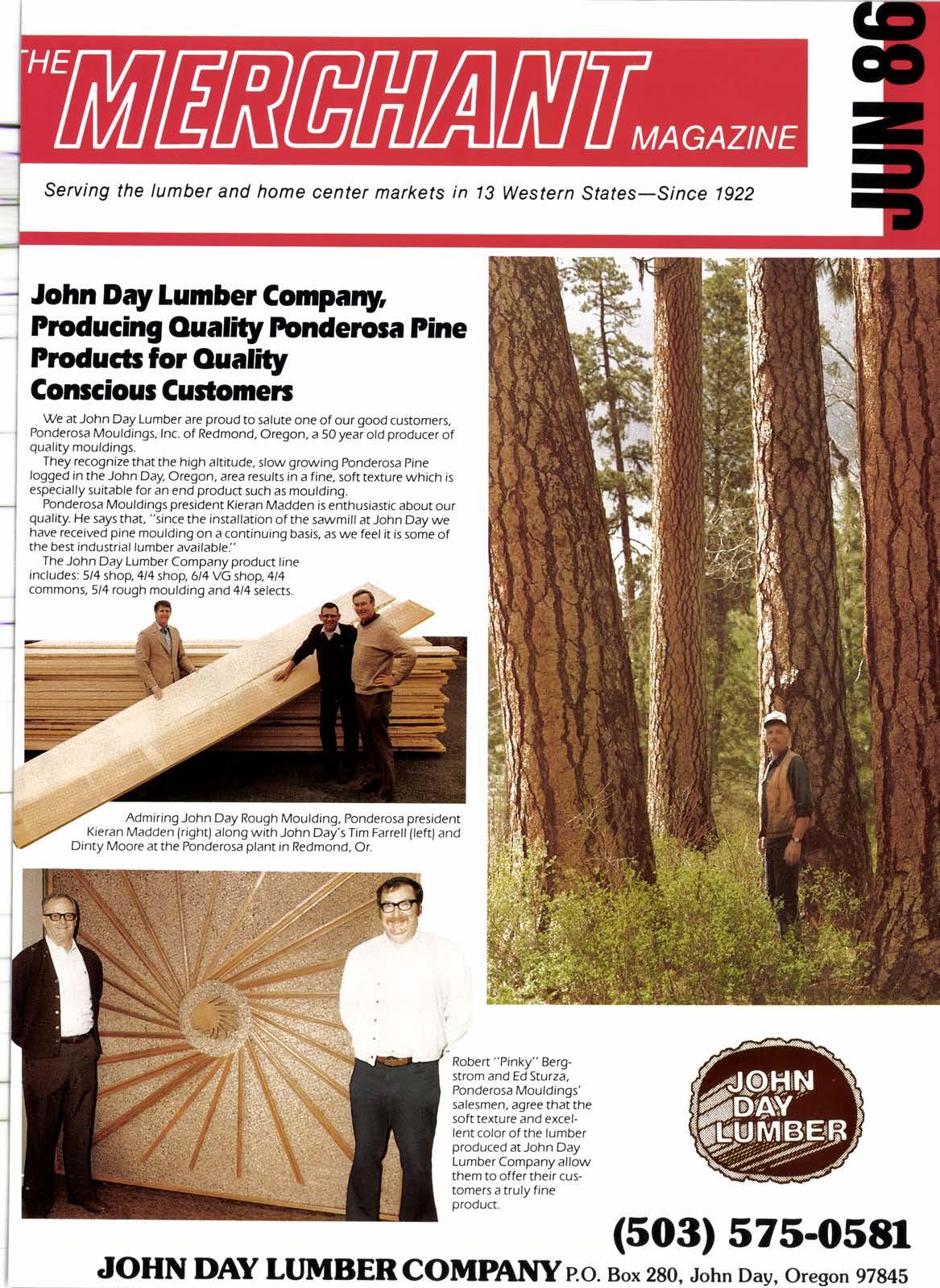 We at John Day Lumber are proud to salute one of our good customers, Ponderosa Mouldings, Inc. of Redmond, Oregon, a 50year old producer of quality mouldings.