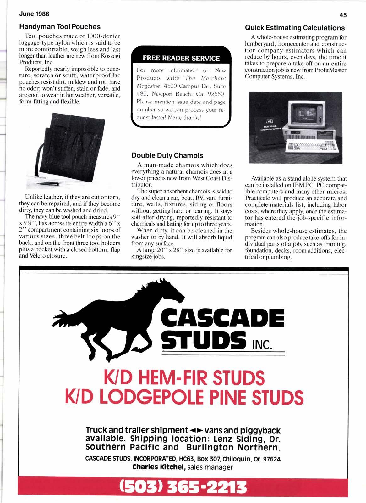 Serving the lumber and home center markets in 13 Western StafesSince 1922 JUNE 1986 VOLUME 64' No. 12 28 Tips For Saving Dollars On Insurance Costs How To Distinguish All Heart From Clear Redwood Many Dealers Like The Benefits Of Pre-Staining How To Teach Your People Better Sales Techniques Arizona Home Center ls First Of New Look Stores Merchandising Can Be Effective In Cutting Losses Cavenham ls New Name For Former Crown ZTimber Wickes To Buy Home Centers West From Grace Co. NAWLA Elects Southern California Man President Favorable Results In Treated Wood CIS Program Hardwood Club Sponsors NHLA Short Grading Course Hardwood Distributors Assn. Favors New Standards 9 to t1 12 14 t6 29 3r 32 34 38 52 Calendar Classified Buyers Guide Advertisers lndex Editorial Page News Briefs Home Center Merchant LMA News The Southland Mountain States 6 Northwest News l8 OperatingOpportunities