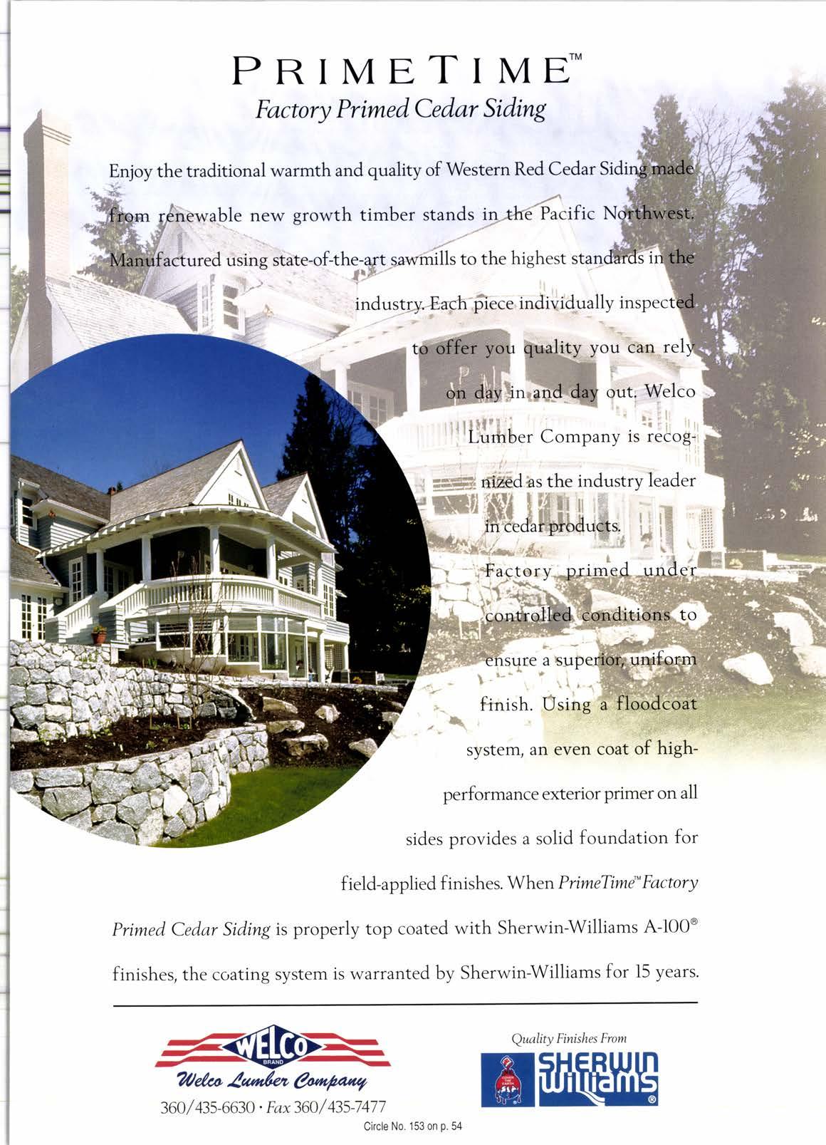 Primed Cedar Siding is properly top coated with Sherwin-Williams A-100@ finishes, the coating system is warranted by Sherwin-Williams for 15 years. Quality