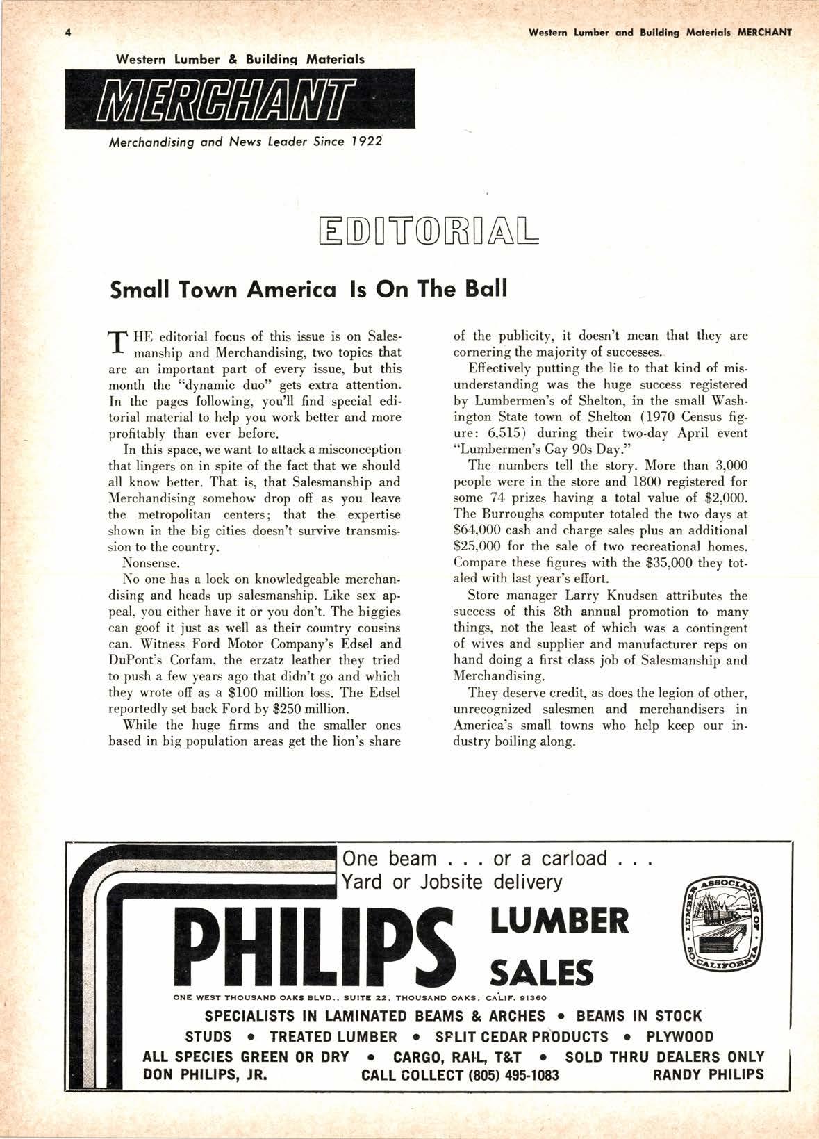 is an independent magaa'ine, for the lumber onil buililing naterials inilustr! in the 18 Westen. atates, concentrating on merchandistng, rnonogernent anil accurate, factuol newc.