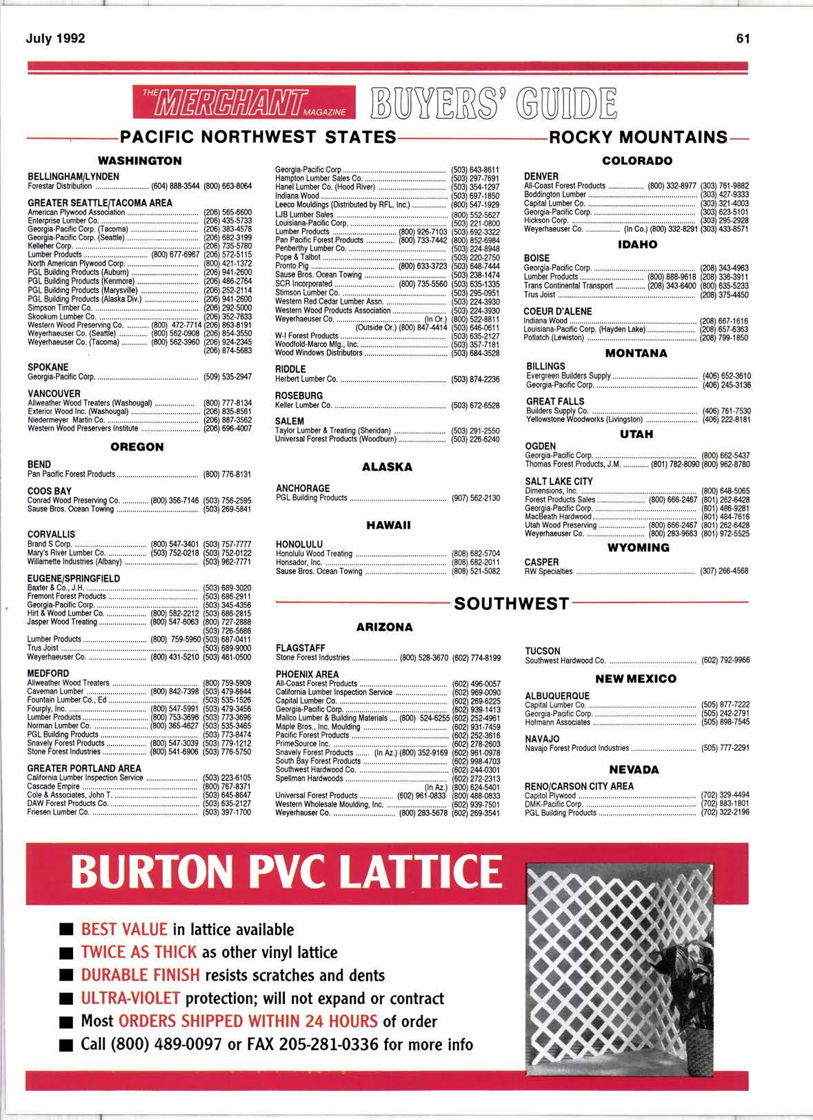 The 1992 Hardwood Manufacturers Association Buyer's Guide & Directory, a 57-p. guide to 169 hardwood mills in 22 states, is available from HMA, (800) 3739663.