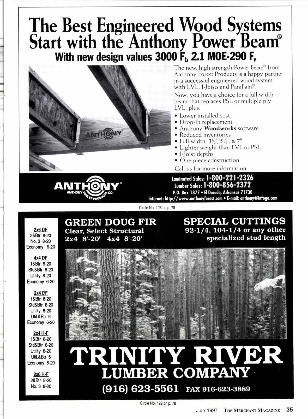 John Rovi, Furman Lumber Co., Dallas, Tx., says that the products like Anthony Forest Products' new higher strength Power Beam have helped create new attention for glulam beams in his market. "Their sales growth has been consistent." he notes.
