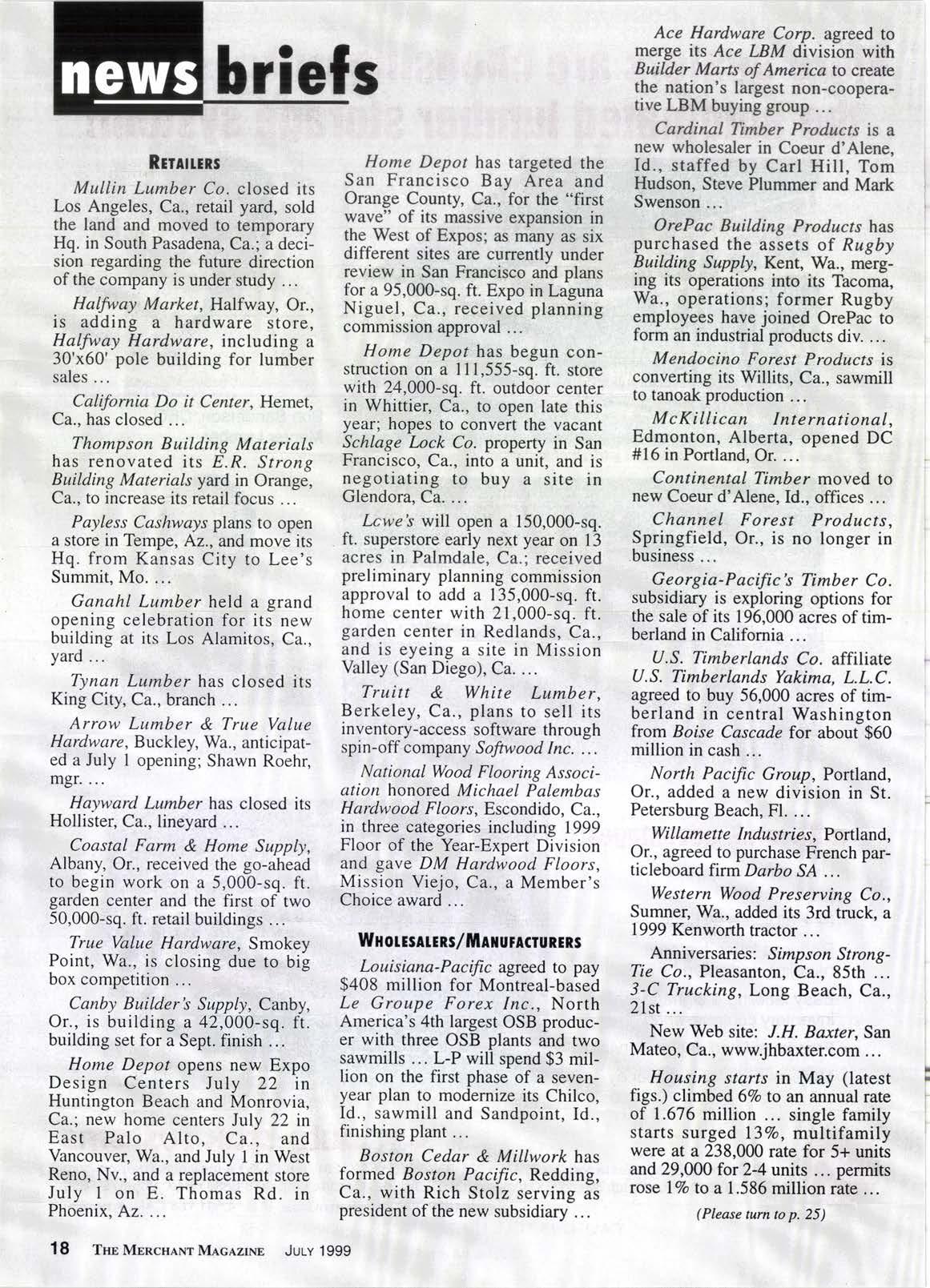 OrePac Building Products has purchased the assets of Rugby Building Supply, Kent, Wa., merging its operations into its Tacoma, Wa., operations; former Rugby employecs havo joined OrePac to form an industrial products div. Mendocino Forest Products is converting its Willits, Ca., sawmill to tanoak production