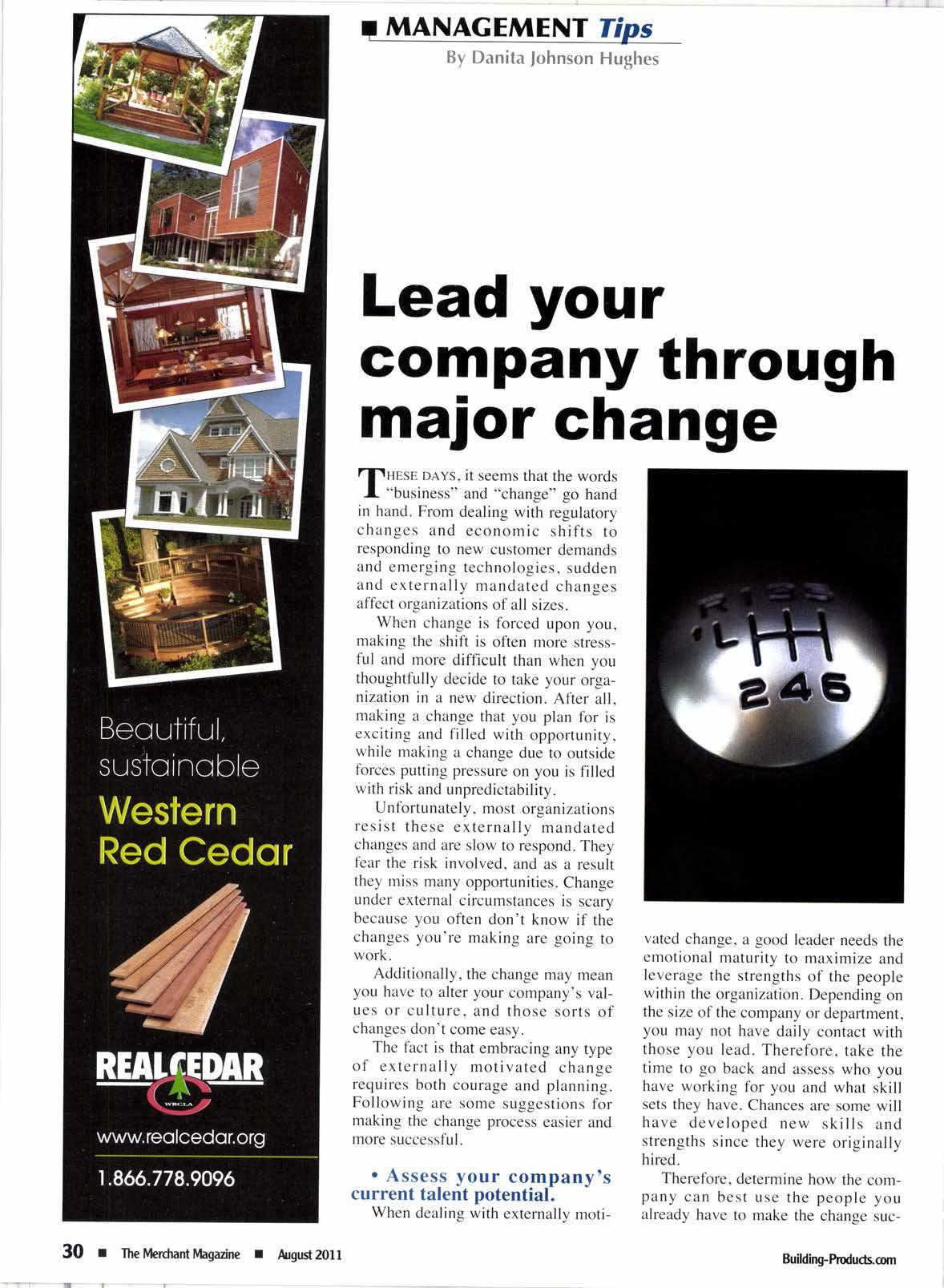 Therefore, determine how the company can best use the people you already have to make the change suc- cessful. Most people overlook the talI ent that's right under their nose and I think they need to look outside for the I skills to best move the company forI ward.