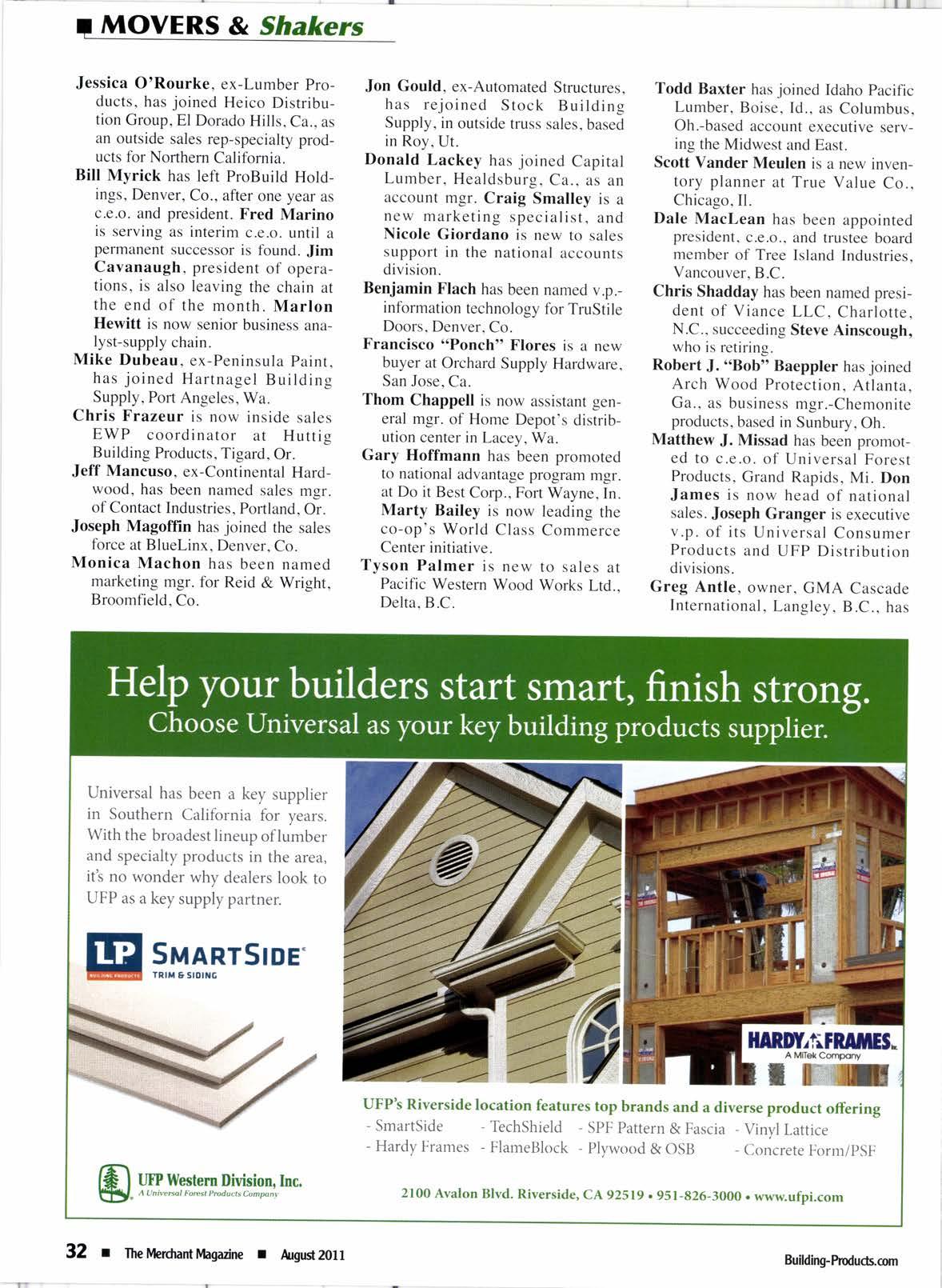 Matthew J. Missad has been promoted to c.e.o. of Universal Forest Products, Grand Rapids, Mi. Don James is now head of national sales. Joseph Granger is executive v.p. of its Universal Consumer Products and UFP Distribution divisions.