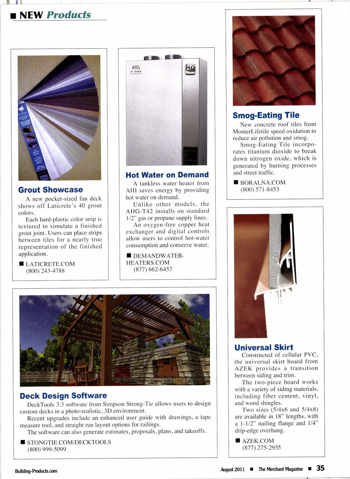 Boards, which reportedly never need sealing, painting or refinishing, contain 30Vo recycled bamboo fibers and 707o recYcled Plastics.