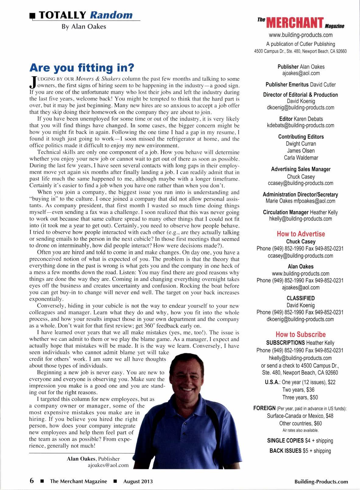 6 I The Merchant Magazine I August 2013 Building-Products.com