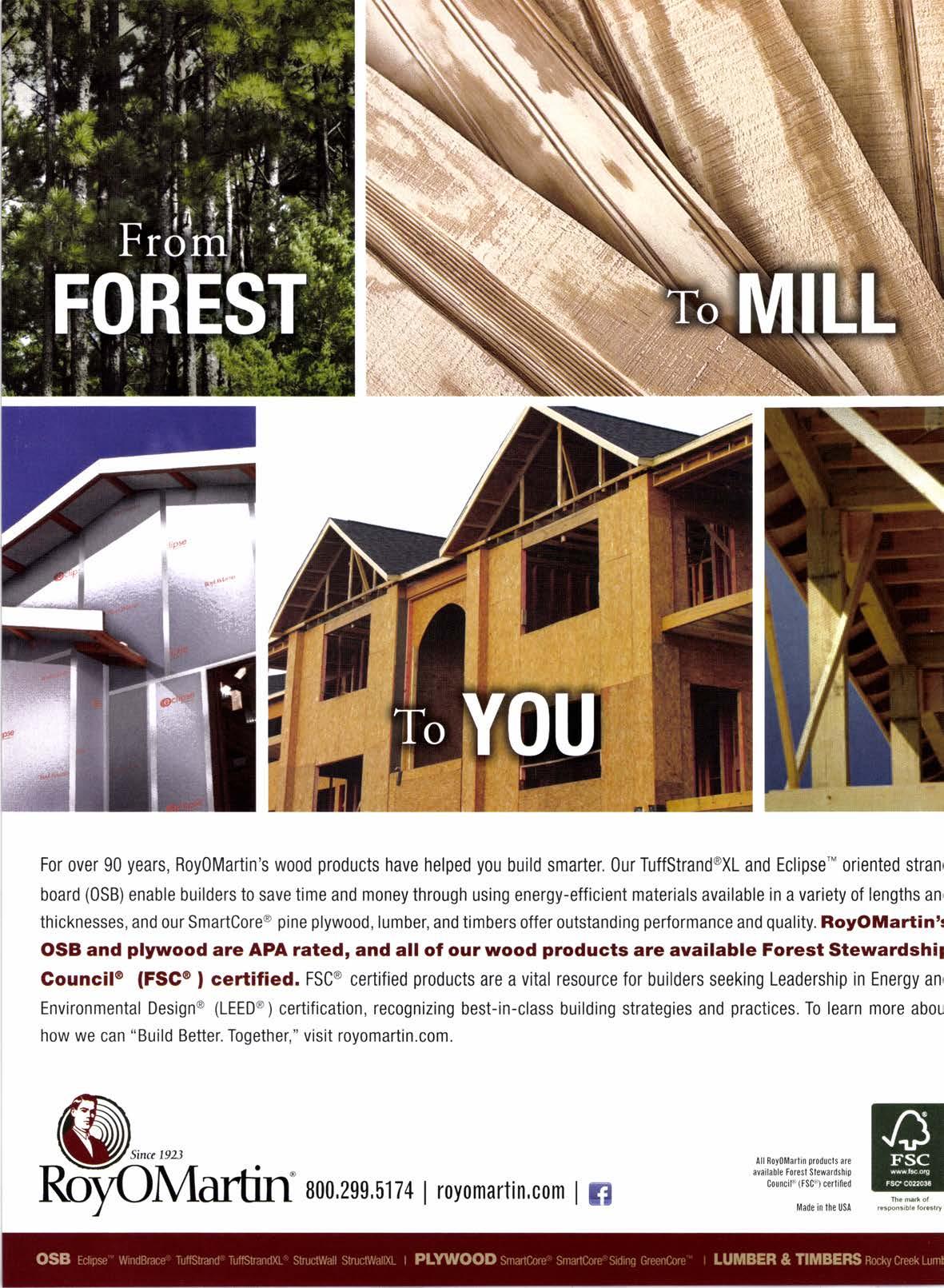 Gouncil@ (FSC@ I certified. FSC" certified products are a vital resource for builders seeking Leadership in Fnergy anr Environmental Design'" (LEED" ) certification, recognizing best-in-class building strategies and practices. To learn more abou how we can "Build Better. Together," visit royomartin.com.