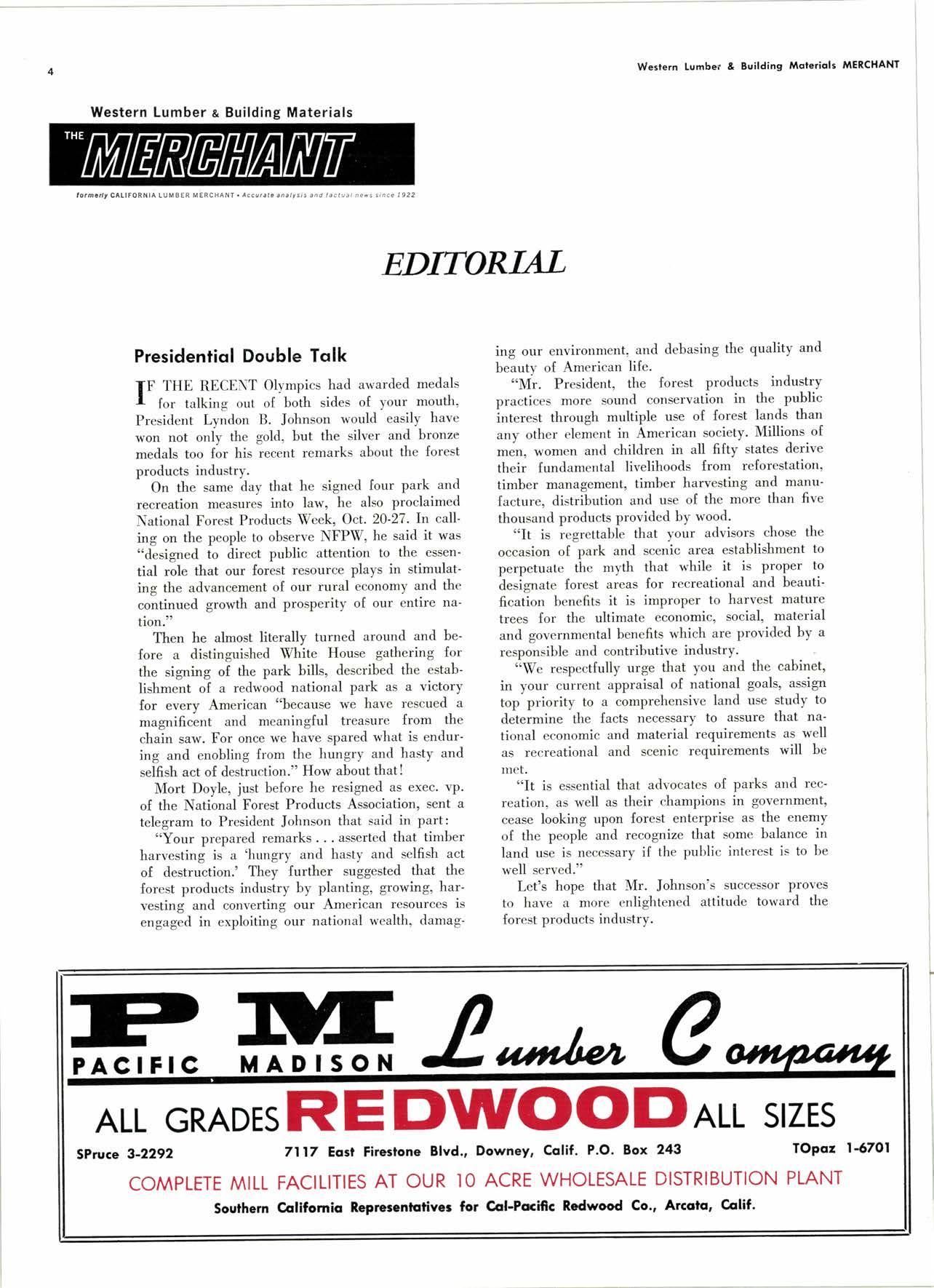 fF THE RECENT Olympics had awarded medals I for talking out of both sides of your mouth, President Lyndon B. Johnson would easily have won not only the gold, but the silver and bronze medals too for his recent remarks about the forest products industry.